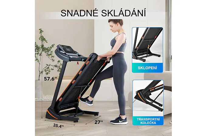 Připojit se k pásu lze přes Bluetooth, díky čemuž můžete využít tréninkové aplikace KINOMAP, ZWIFT aj... Co se týče plochy pro běh, její šířka je 42 cm a délka 124 cm (s ohledem na relativně malou běžeckou plochu je pás vhodný spíše na chůzi než běh). Využívat můžete až 12 programů. Je dobré zohlednit to, že jeho celkové rozměry jsou 162 x 68 x 127 cm. Hodí se tak i do malých prostorů, jako jsou byty v panelovém domě apod...