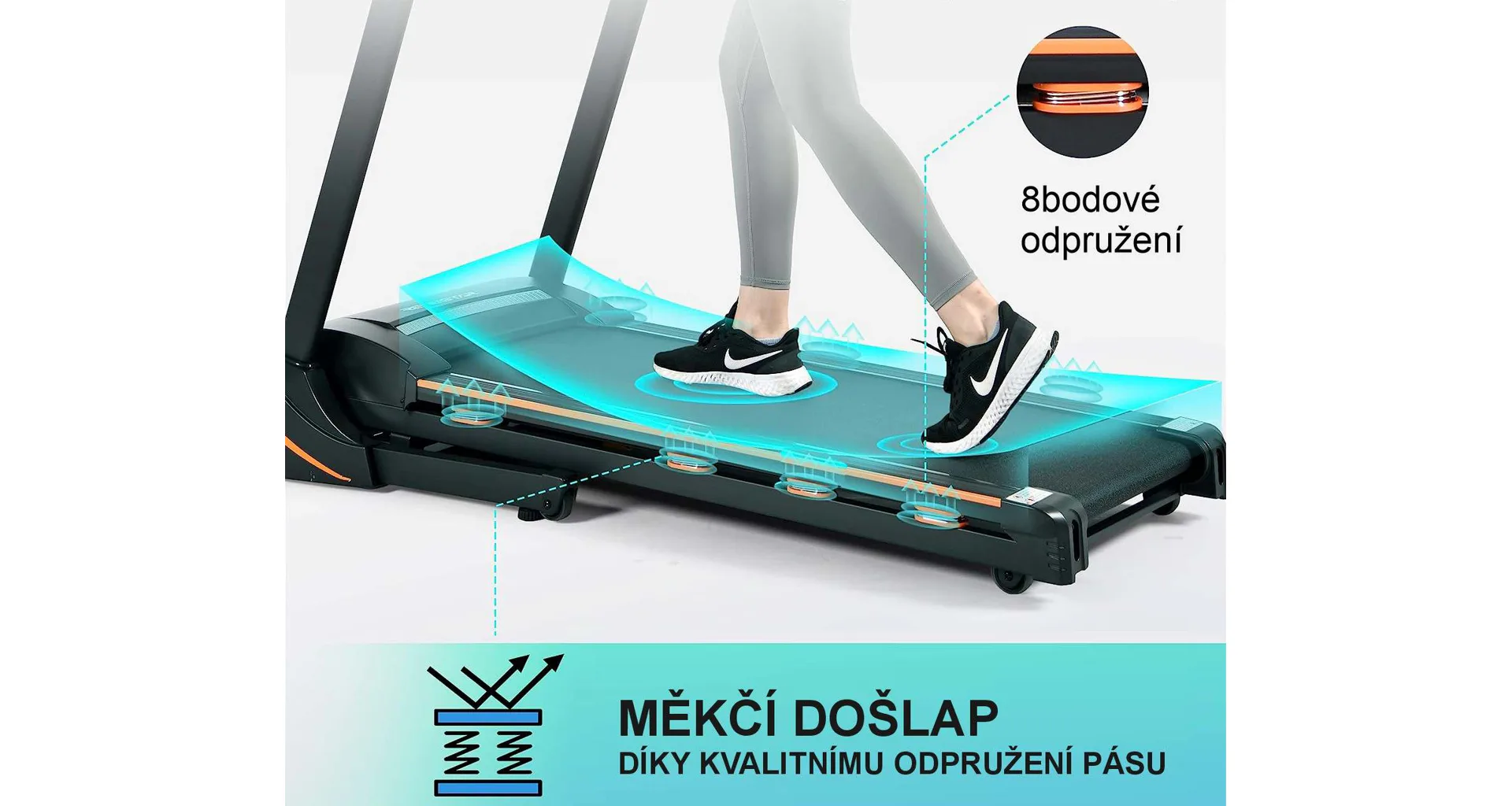 | Odpružení běžecké plochy | Odpruženie gumovými silentblokmi |