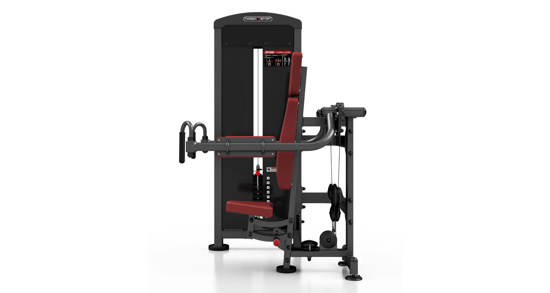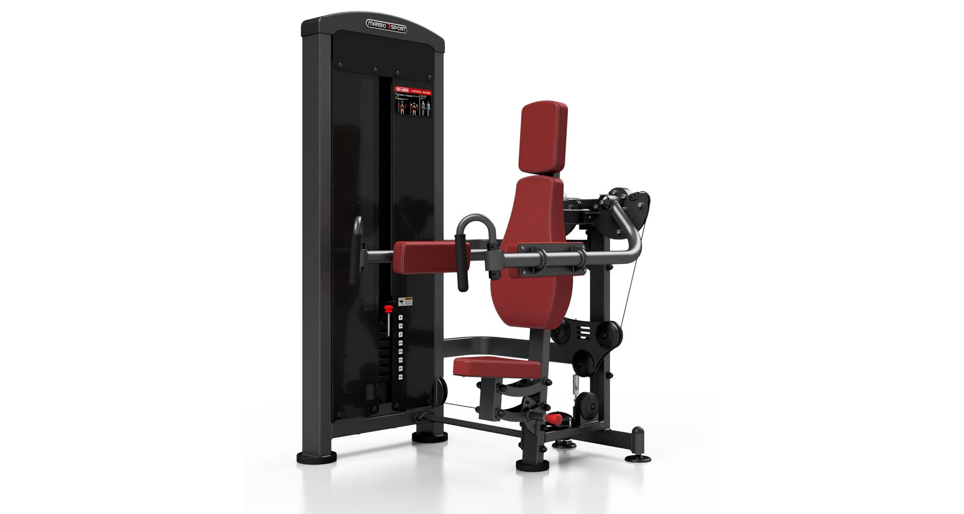 Stroj na posilnenie deltových svalov MARBO MP-U228 je nekompromisné, profesionálne vybavenie pre Vašu posilňovňu. Na výrobu boli zvolené oceľové profily 120x60x3mm a 80x40x3mm, ktoré zaručujú nečakanú trvanlivosť.