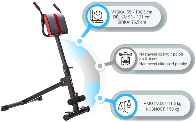 Rímska lavica, alebo hyperextenzia HMS LR8310, slúži na intenzívne posilňovanie chrbtového a sedacieho svalstva. Pre správnosť polohy pri cvičení je opora výškovo nastaviteľná v rozmedzí 93 - 121 cm. Na reguláciu záťaže je lavica nastaviteľná do štyroch uhlov. Cvičením na tejto lavici predchádzate okrem iného bolestiam chrbta, ktoré sú spôsobené ochabnutým svalstvom bedrovej chrbtice.