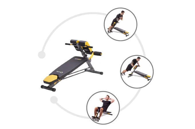 HMS Premium LSR8311 v sebe kombinuje klasickú lavicu, šikmú lavicu, lavicu s bicepsovou opierkou (modlitebník) a hyperextenziu.
