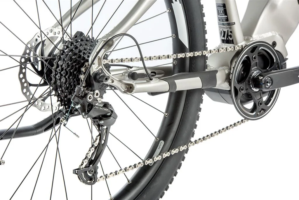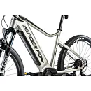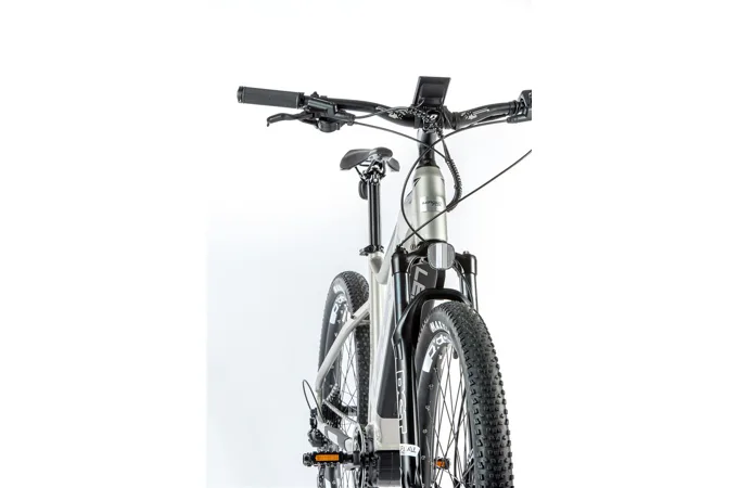 Komfort e-biku zajišťuje bohatá základní výbava s odpruženou vidlicí, kotoučovými brzdami a stabilními 27,5“ zapletenými koly.