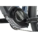 Komfort e-biku zajišťuje bohatá základní výbava s odpruženou vidlicí, kotoučovými brzdami a stabilními 28“ zapletenými koly.