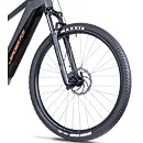 Komfort e-biku zajišťuje bohatá základní výbava s odpruženou vidlicí, kotoučovými brzdami a stabilními 29“ zapletenými koly.