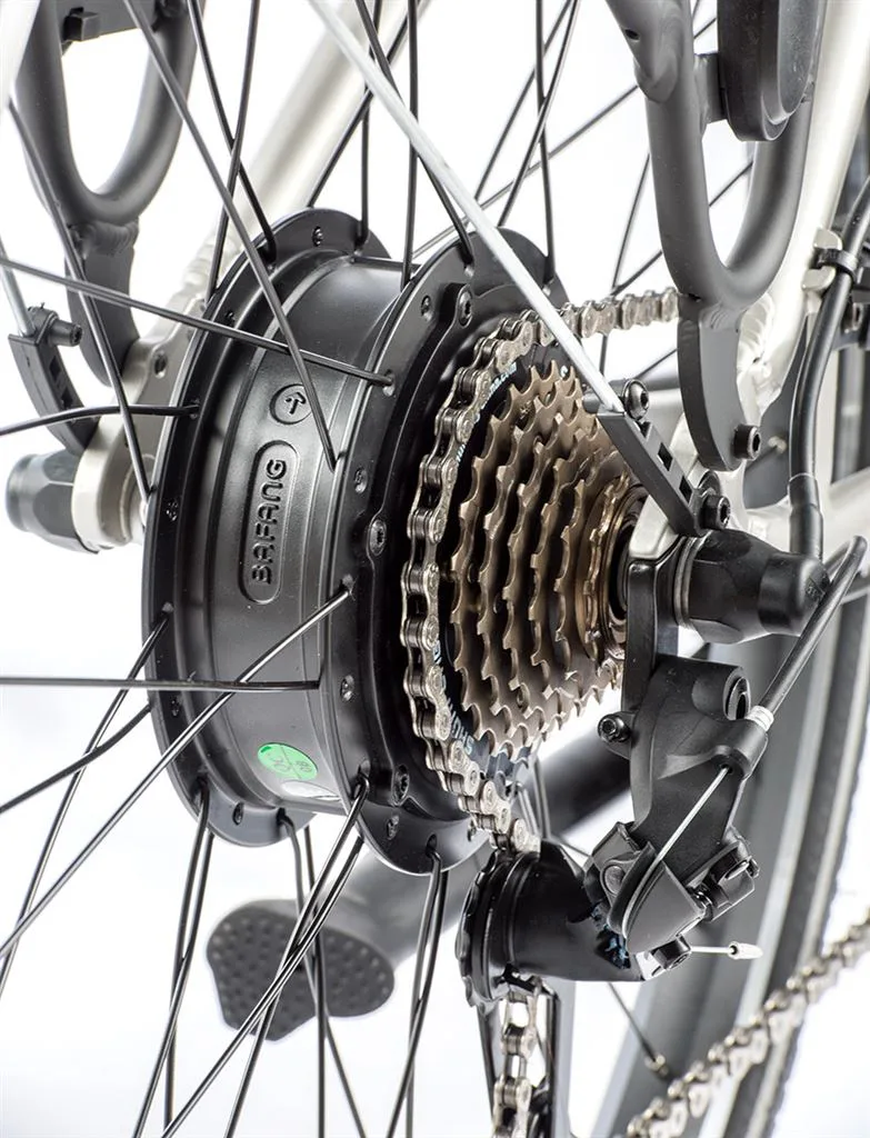 Pohon elektrokola LATONA tvoří zadní motor Bafang 250 W (max. 350 W). Motor je umístěn v zadním náboji a zajišťuje výborné jízdní vlastnosti se silným výkonem.