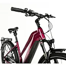 Komfort e-biku zajišťuje bohatá základní výbava s odpruženou vidlicí, kotoučovými brzdami a stabilními 28“ zapletenými koly.
