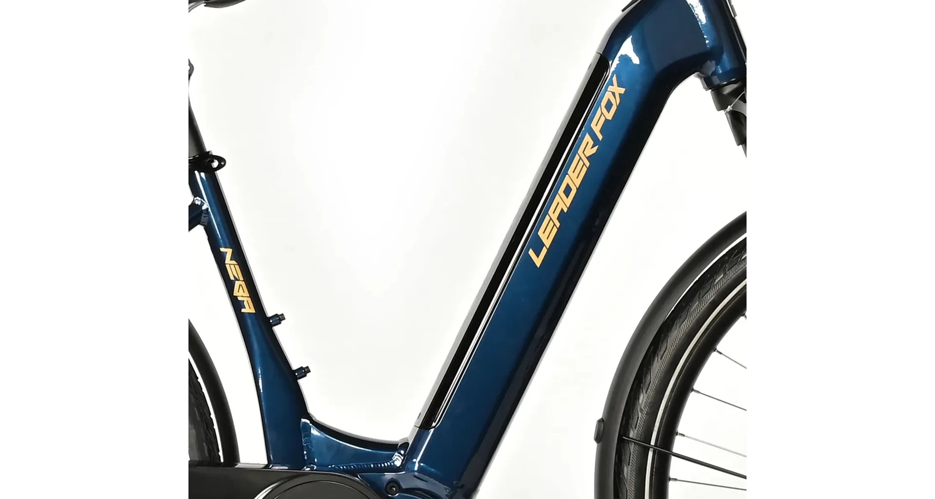 Leader Fox NEBA disponuje 16,5" rámem s moderním designem z hliníku, integrovanou baterií v rámu kola a výkonným středovým motorem Bafang M420.