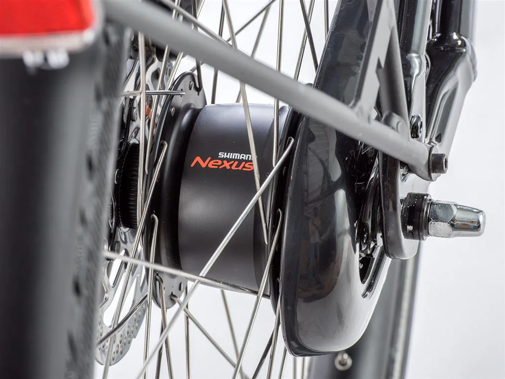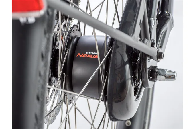 Leader Fox NEBA je městské elektrokolo s elegantním designem, odpruženou přední vidlicí, kotoučovými brzdami, 8stupňovou integrovanou přehazovačkou shimano nexus a rozměrem kol 28". Kapacita baterie je 14 Ah (504 Wh).