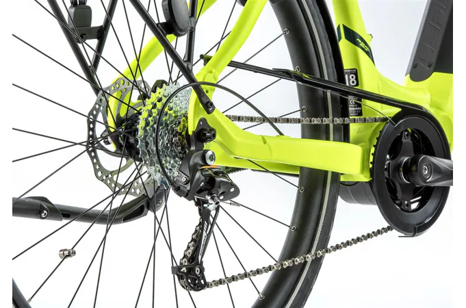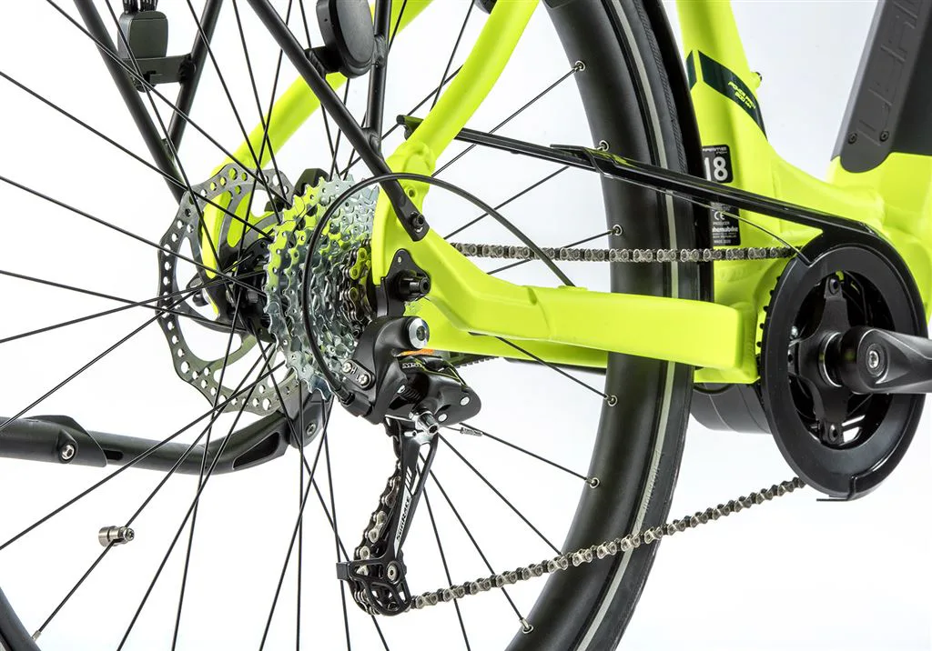 Model disponuje 20" rámem s moderním designem z hliníku, baterií integrovanou v rámu kola a výkonným středovým motorem Bafang.