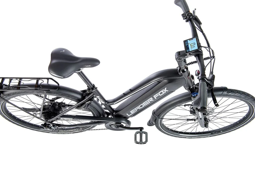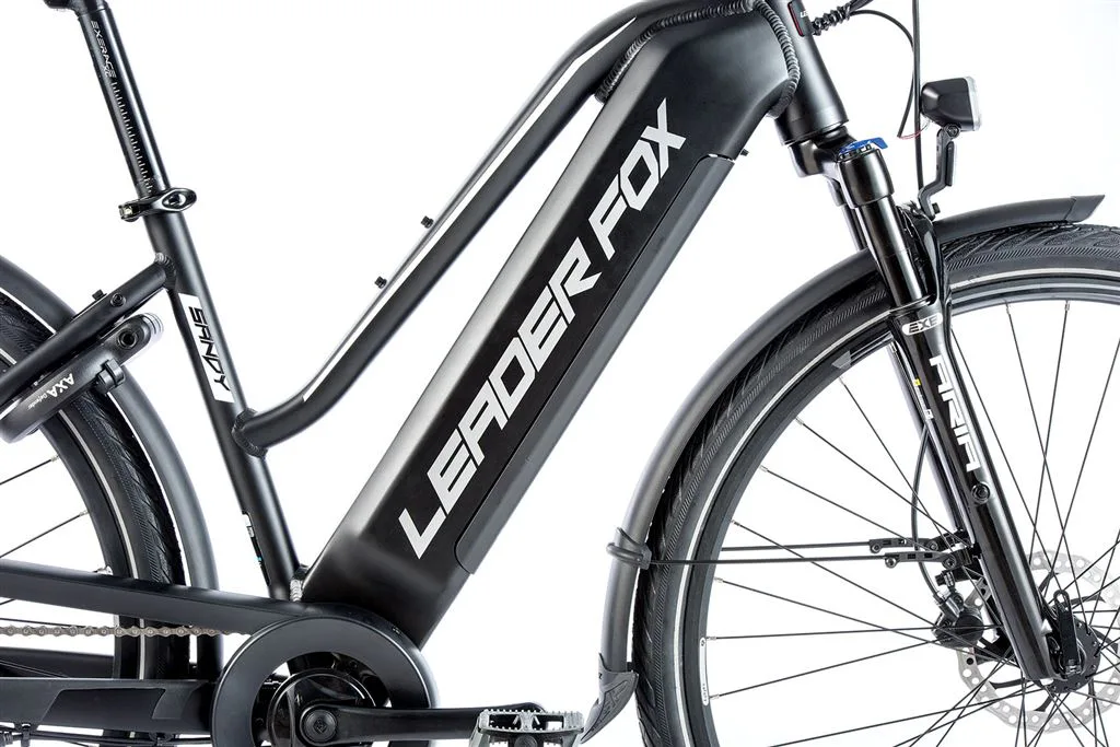 Leader Fox SANDY je trekové elektrokolo vhodné pro dámy. SANDY je e-bike s plně integrovanou baterií v rámu kola, sportovním designem, odpruženou přední vidlicí, pohodlným sedlem a nosičem. Kapacita baterie je 15 Ah (540 Wh).