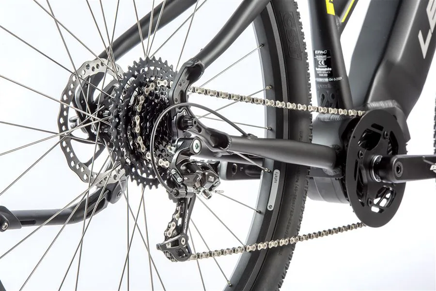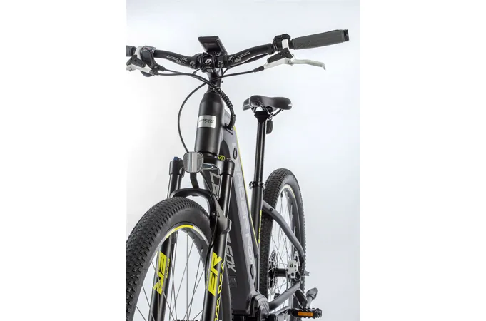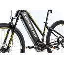 Komfort e-biku zajišťuje bohatá základní výbava s odpruženou vidlicí, kotoučovými brzdami a stabilními 29“ zapletenými koly.