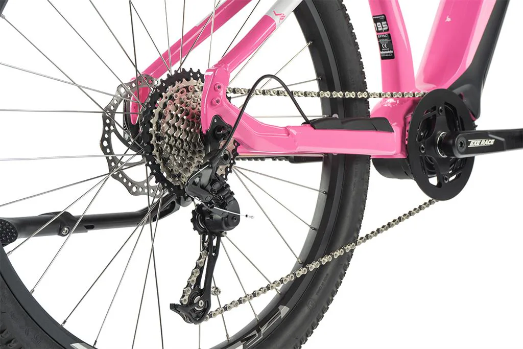 Komfort e-biku zajišťuje bohatá základní výbava s odpruženou vidlicí, kotoučovými brzdami a stabilními 27,5“ zapletenými koly.