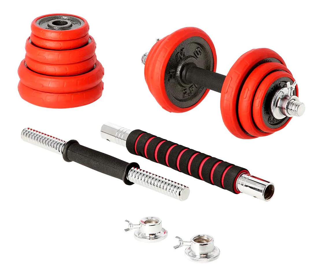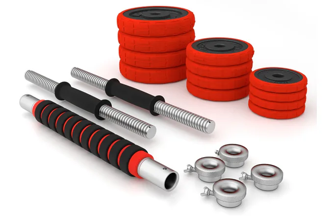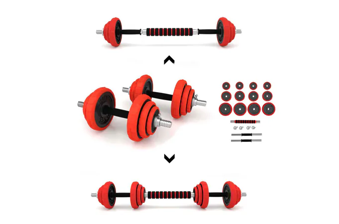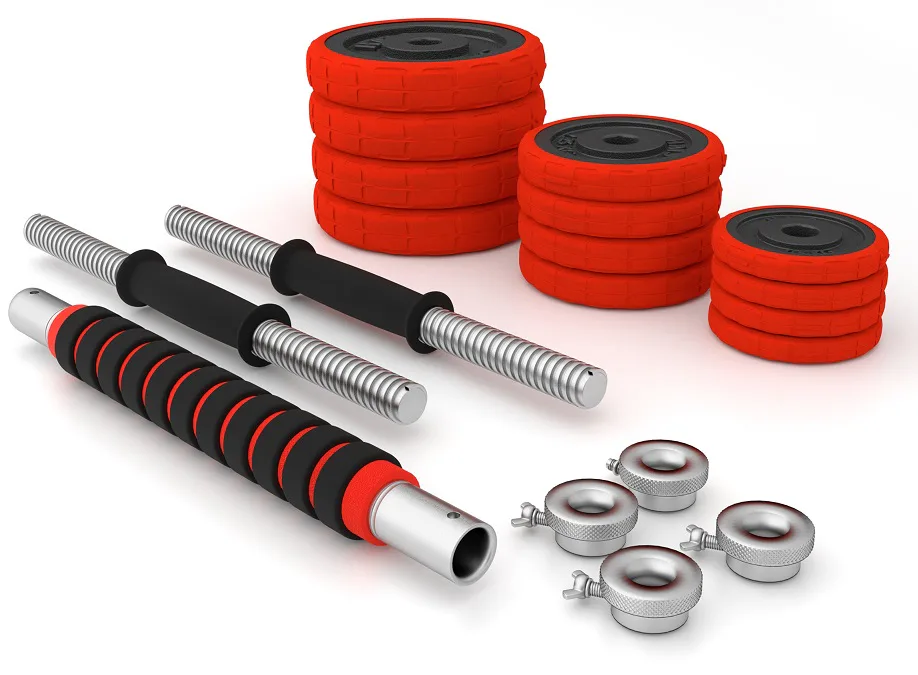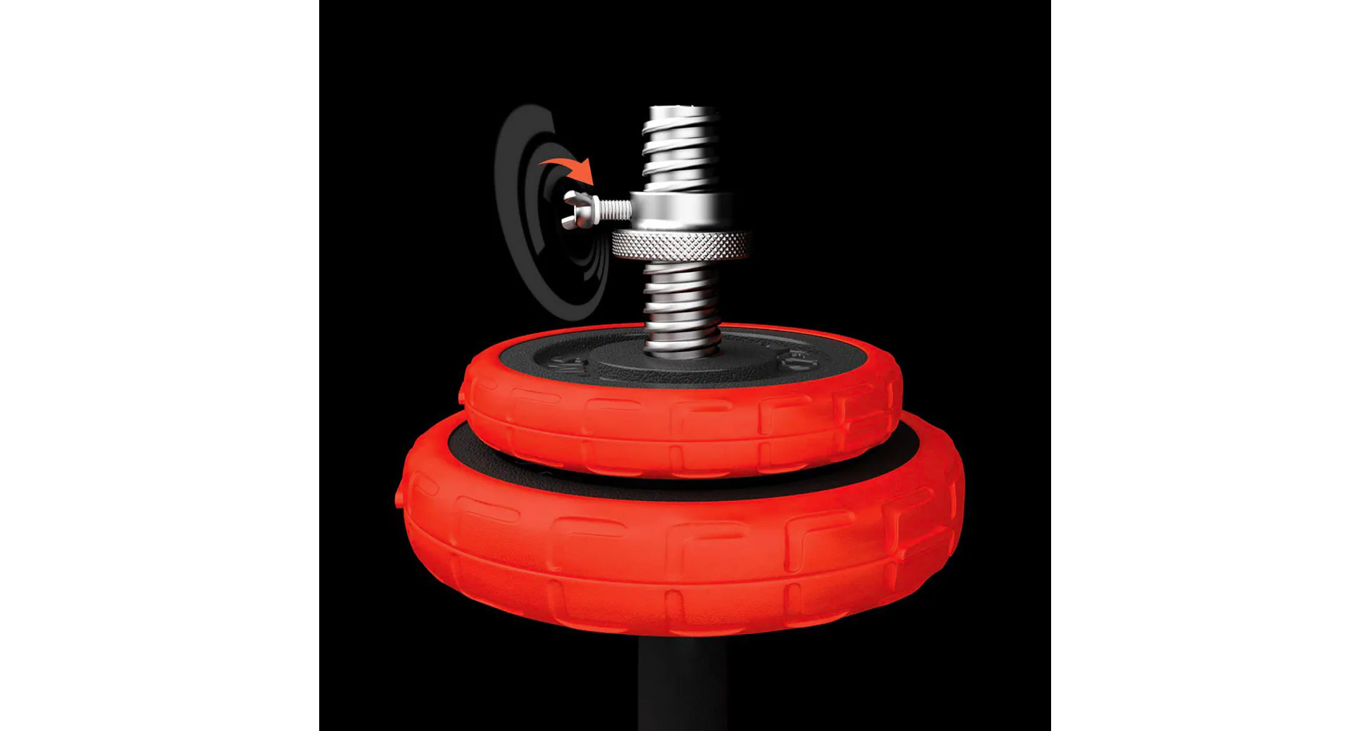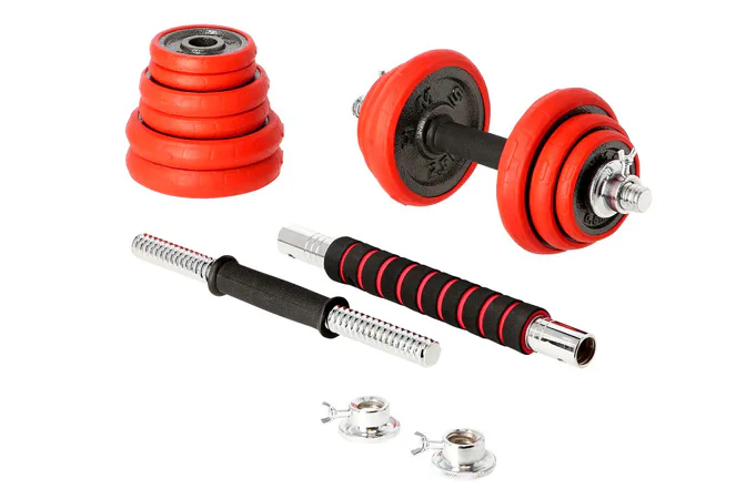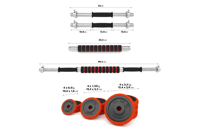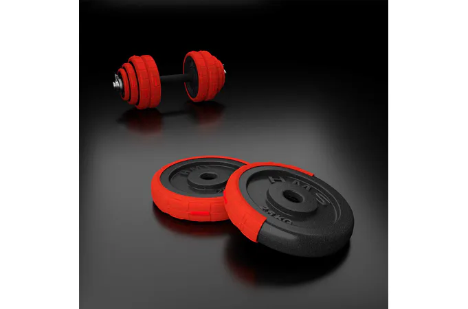 Činky sú vyrobené z vysoko kvalitnej liatej ocele, ktorá je zárukou dlhej životnosti. Kotúče sú opatrené gumovým návlekom, ktorý chráni ako činky, tak aj samotnú podlahu pred poškodením pri neopatrnom odložení. Proti posunutiu závažia sa činky zaisťujú skrutkovacími zámkami, ktoré sú dodatočne istené skrutkou.
