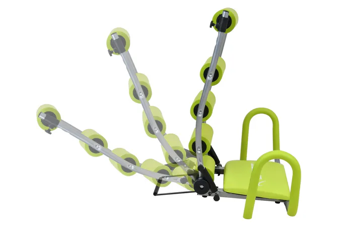 Päť pohyblivých valcov na chrbtovej opierke a 3 stupne nastavenia odporu umožňujú perfektné precvičenie bruška, pása a posilnenie chrbtových svalov. Pohyblivé valce majú aj relaxačný masážny účinok.