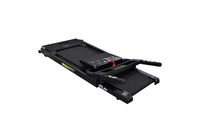 Bežecký pás je možné bez problémov zložiť do vertikálnej polohy s minimálnymi rozmermi.