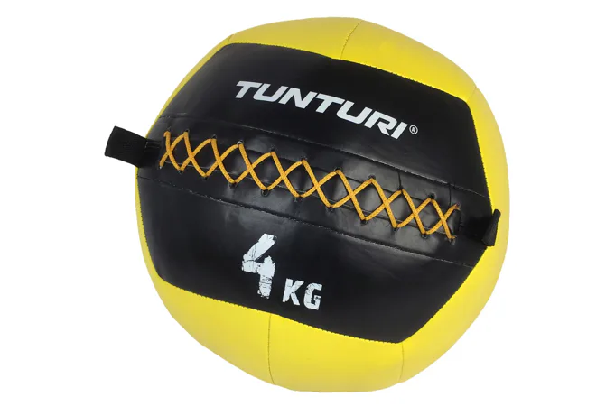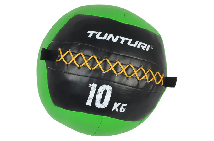 TUNTURI lopta pre funkčný tréning WALL BALL je kombináciou klasického medicinbalu a špeciálne upravenej lopty pre posilňovanie. Posilňovacia lopta je vyrobená zo syntetickej kože, ktorá je odolná proti vlhkosti. Vďaka tomu je možné vykonávať rôzne cvičenia ako v uzavretom prostredí, tak vo vonkajšom prostredí. Konštrukcia a prevedenie lopty zaisťuje, aby zostal tvarovo rovnaký, stabilný a vyvážený aj po niekoľkonásobných nárazoch či dopadoch. Oká na strane umožňujú pripojenie lana alebo gumy, vďaka čomu získava loptu nový rozmer. WALL BALL slúži na zvyšovanie fyzickej kondície, naberanie svalovej hmoty alebo na celkové posilňovanie vlastnou hmotnosťou. Taktiež môže byť využívaný ako pomôcka na rehabilitáciu.