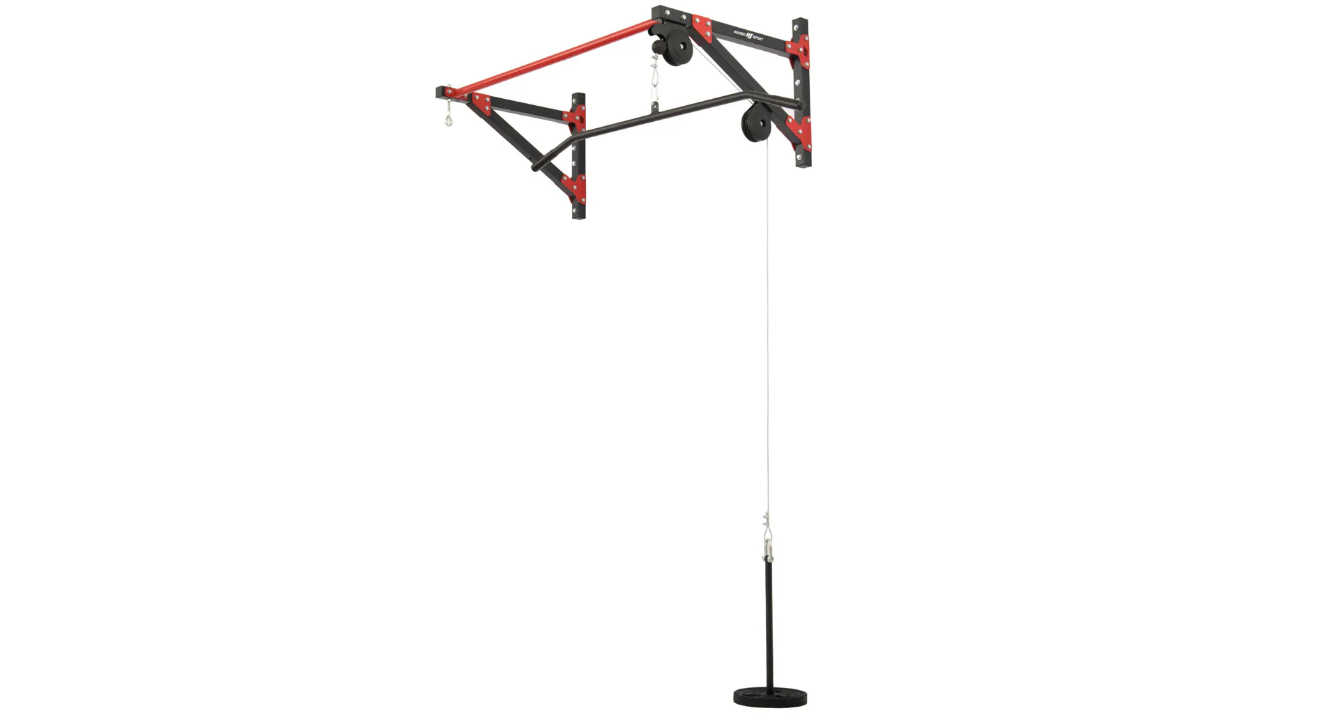 Horná kladka je tvorená oceľovým lankom, ktoré má na oboch koncoch karabínu. Na jednom konci je zavesený tŕň na nakladanie záťaže v podobe vzpieračských kotúčov, tento tŕň má priemer 22 mm a dĺžku 46 cm. Na druhej strane lana je zavesený široký adaptér s dĺžkou 120 cm, ktorý je pre lepší komfort osadený gumovými gripmi. Oko na zavesenie boxovacieho vreca je vzdialené 69 cm od steny. Kladky sú vyrobené z pevnostného plastu osadené guličkovými ložiskami.