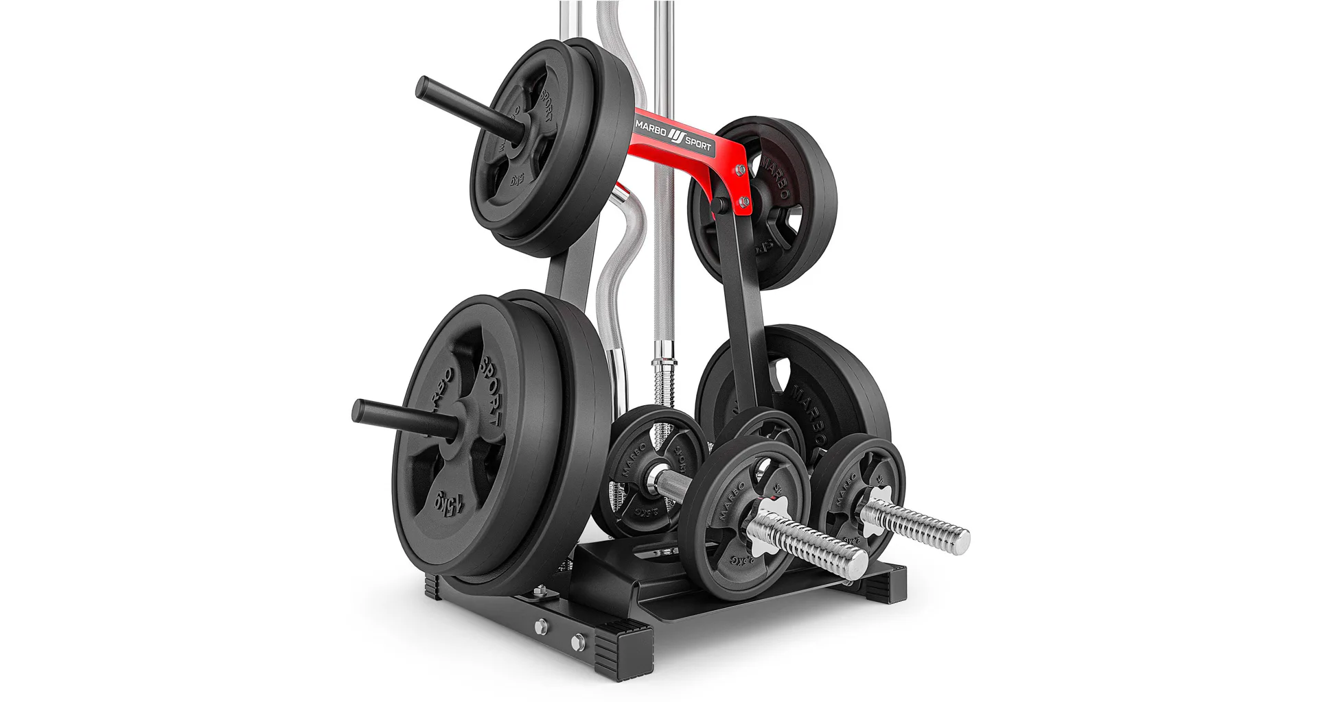 Stojan na závažie a osi Marbo MH-S207 vyniká svojou ergonómiou a spolu s jeho funkčnosťou umožní, že sa na tento stojan zmestia tyče, ale aj závažia a jednoručné činky. Konštrukcia profilov 40x40 mm dosahuje maximálnu záťaž 300 kg.