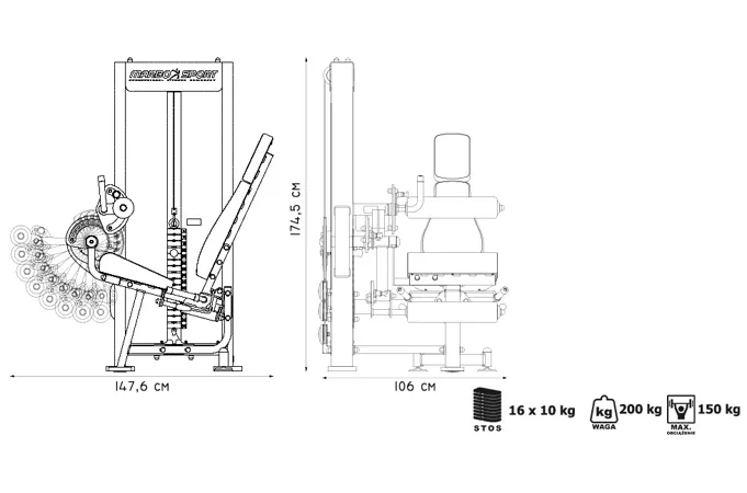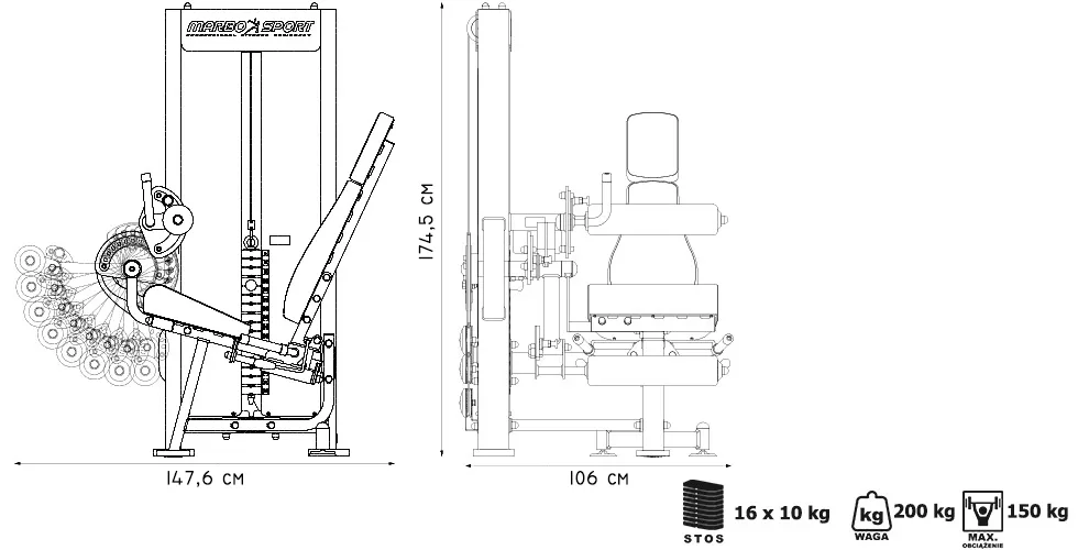 Predkopávanie a zakopávanie Marbo MP-U216 je profesionálne vybavenie pre vašu posilňovňu. Na výrobu boli zvolené oceľové profily 120 x 60 x 3 mm a 80 x 40 x 3 mm, ktoré zaručujú nečakanú trvanlivosť. Záťaž tvorí 16 ks 10kg tehál. Celková váha závažia dodávaná so strojom je teda 160 kg. Stroj disponuje širokou variabilitou nastavenia. Hlavné rameno je polohovateľné v 12 stupňoch, spodný valec v 8 stupňoch, horný valec v 5 stupňoch a operadlo má 4 polohy. Operadlo je navyše podoprené plynovým piestom, takže pre zmenu polohy stačí stlačiť páku a posunúť sa. Napínanie laniek sa vykonáva reguláciou 4 skrutiek na hlavnom vodiacom kolese. Odpadá tak zložité rozoberanie stroja.