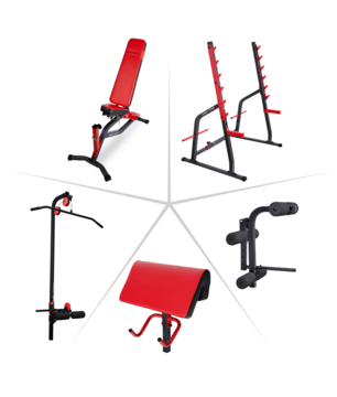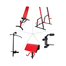 K lavici je možné prikúpiť aj adaptéry: predkopávanie MS-A102, motlitobník MS-A101, kladka MS-W002, zarážka nôh MS-A003 a stojany pod veľkú činku.