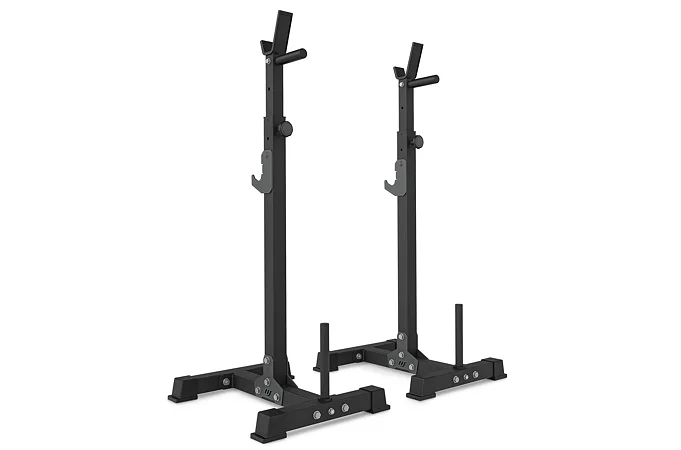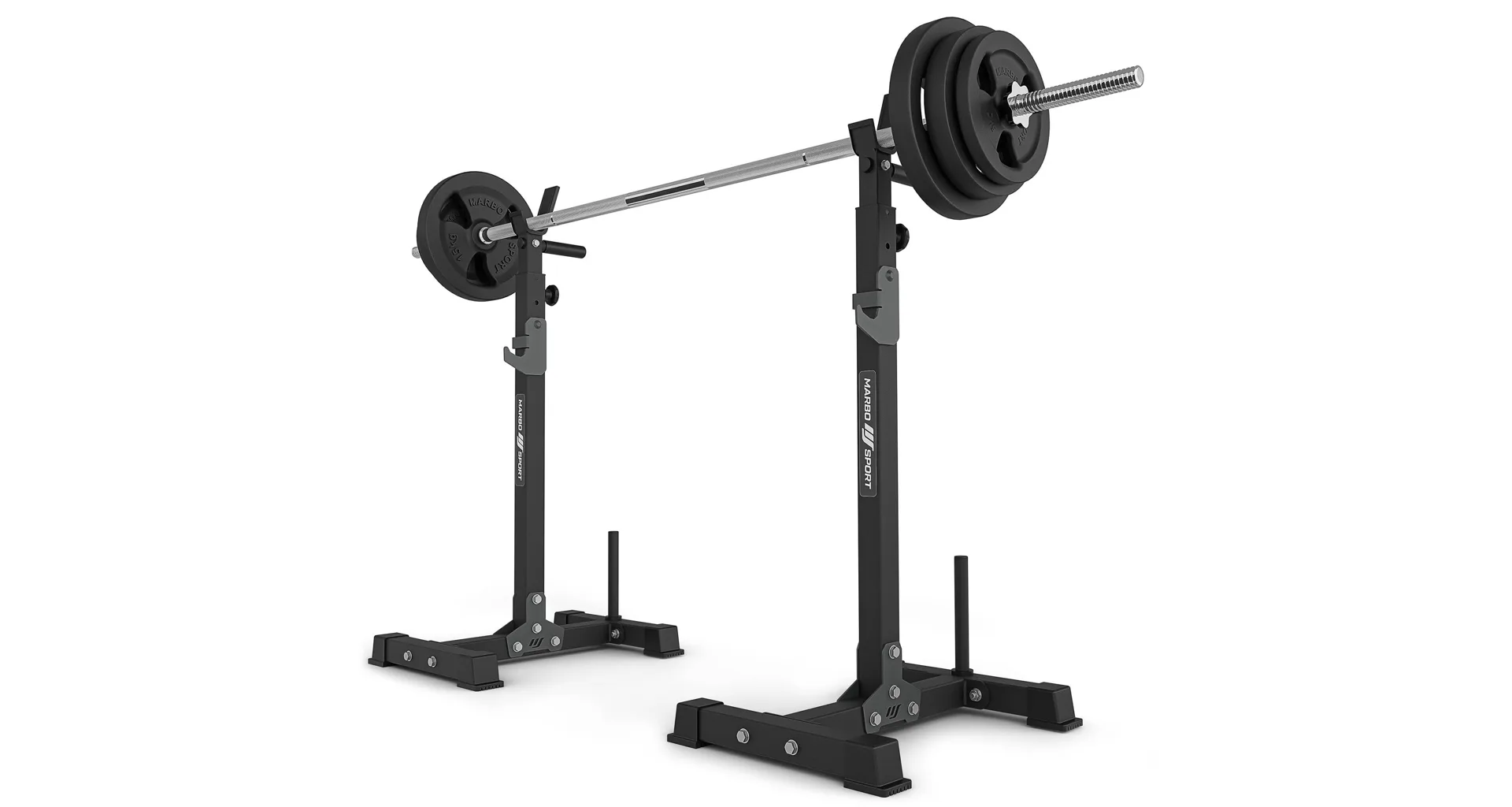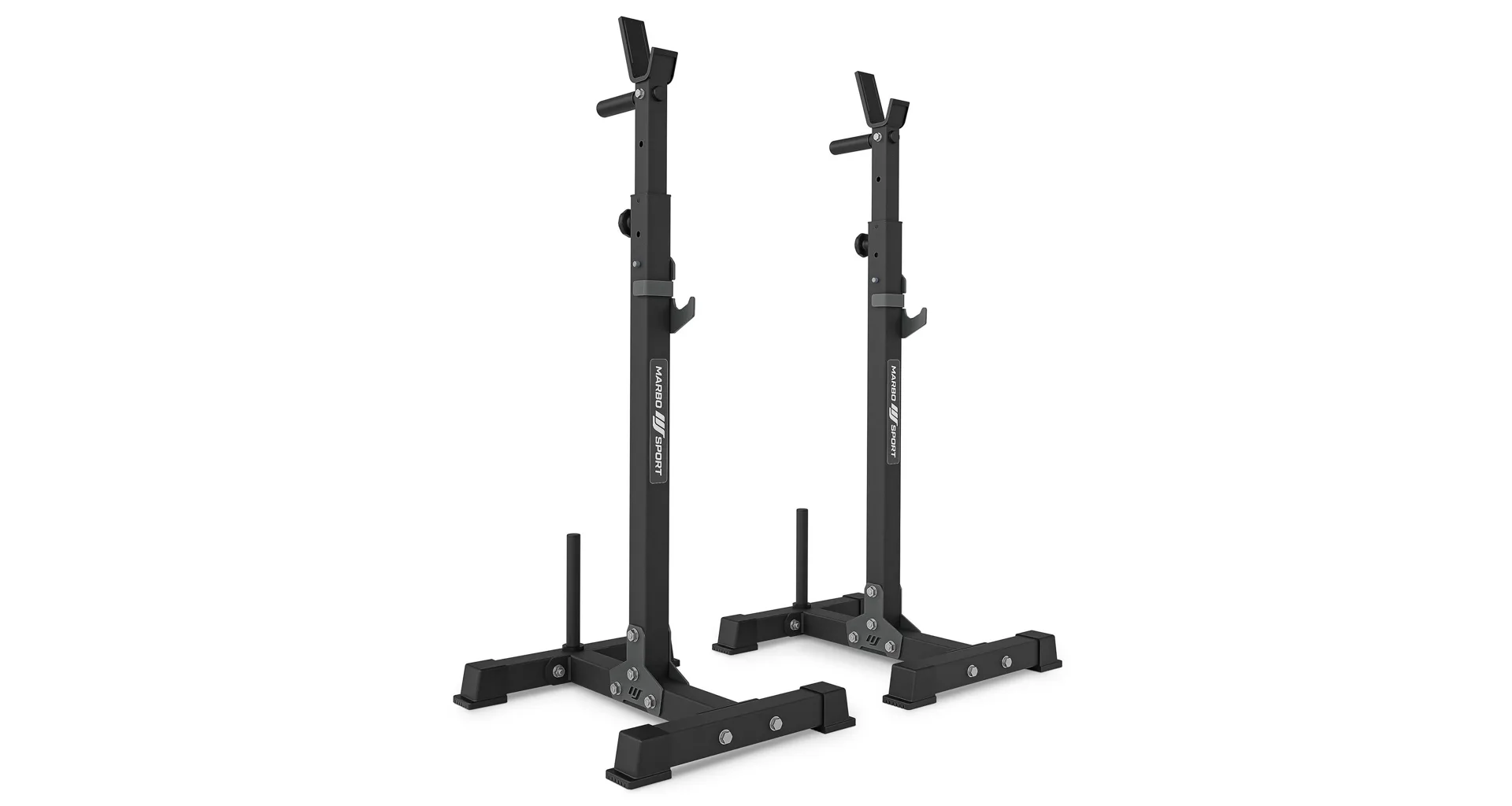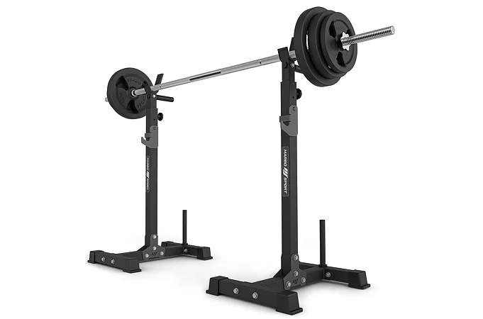 Stojany pod veľkú činku so zarážkami MARBO Sport MS-S108 vo verzii 2.0 sú vyrobené na precíznych CNC strojoch z oceľových profilov o rozmere 50 x 50 x 2 milimetre, tento postup výroby zaručuje vysokú presnosť a stabilitu konštrukcie spolu s nosnosťou 300 kilogramov. Výšku stojanov je možné nastaviť po 5-centimetrových krokoch do 13-tich úrovní v rozsahu od 103 do 163 centimetrov.