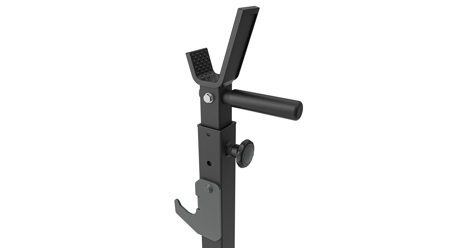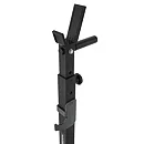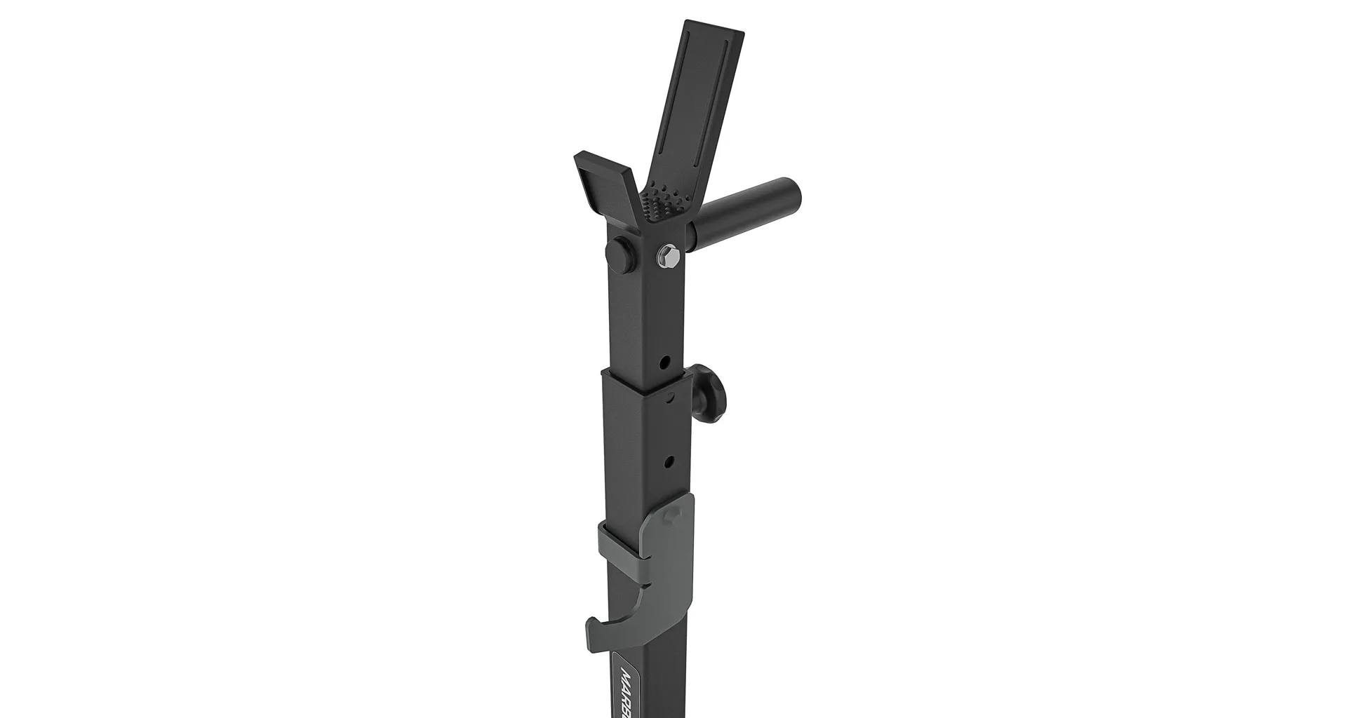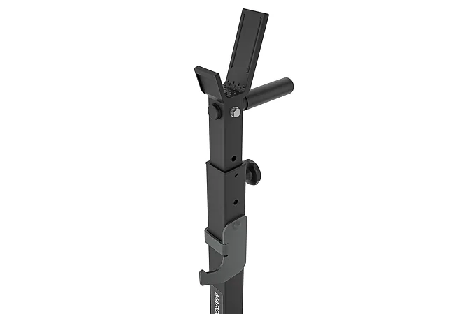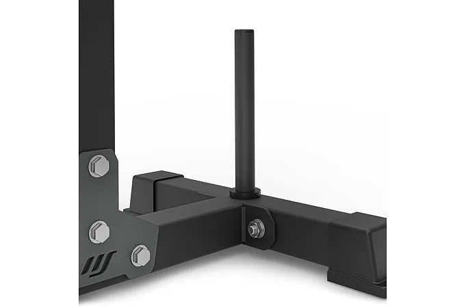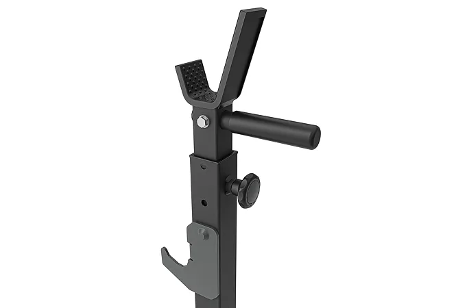 Základňa s rozmerom 54 x 45 centimetrov sa ďalej stabilizuje nevyužitým závažím, ktoré sa nasadí na odkladacie tŕne o rozmere 21 x 2,5 cm. Pokiaľ sú stojany MS-S108 2.0 dostatočne zaťažené, tak ich môžeme využiť aj ako stojany pre tréning dipov (klikov na bradlách), na tento účel sú stojany osadené rukoväťami s gumovými gripmi. Pre maximálnu bezpečnosť počas silových tréningov sú čapy pre nastavené výšky stojanov spojené s rozmerným hákom, ktorý je možné umiestniť do 3 úrovní a primárne slúži na odhodenie činky, pokiaľ už nemáte dostatok síl na vytiahnutie činky do stojana. Koncovky základne sú vyrobené zo špeciálnej zmesi gumy, ktorá zaisťuje ešte lepšiu stabilitu a ochranu podlahy ako u predchádzajúcej generácie stojanov.
