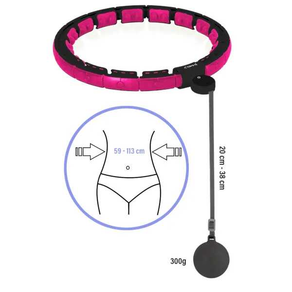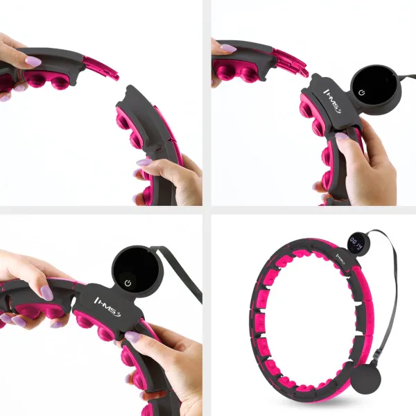 HMS HHM16 je obruč s nastaviteľným obvodom, magnetickými masážnymi výstupkami, rotačným závažím a prehľadným, ľahko čitateľným počítadlom.