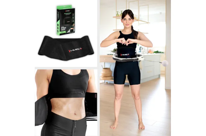 HMS HHM16 je skladacia hula hoop s nastaviteľným obvodom, masážnymi výstupkami s magnetmi a šikovným, digitálnym, displejom doplnený o rotujúce závažie. Umožňuje simultánny tréning a 360-stupňovú magnetickú masáž pása. Počítač nabíjaný pomocou USB-C konektoru zaisťuje presné meranie parametrov počas tréningu. Až 32 magnetov vám umožní naplno využiť výhody magnetického poľa, ktoré má pozitívny vplyv na váš metabolizmus a urýchľuje spaľovanie tukov. Vďaka nastaviteľnému obvodu HHM16 pri cvičení nikdy nespadne! V sete so zoštíhľujúcim pásom BR163 PLUS SIZE dosiahnete vysnívanú postavu ešte rýchlejšie.
