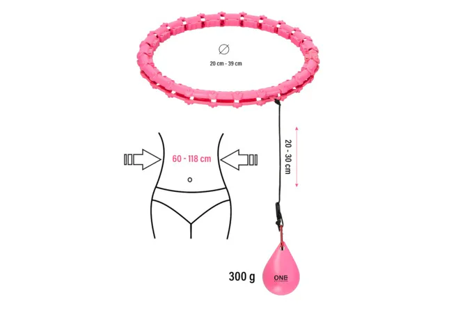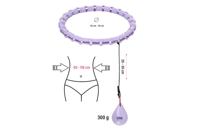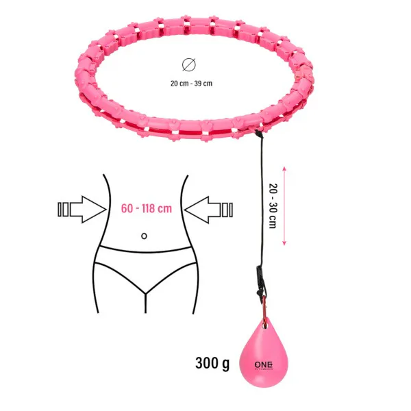 ONE Fitness OHA02 je hula hop obruč s nastaviteľnou dĺžkou, masážnymi výstupkami a rotujúcim závažím.