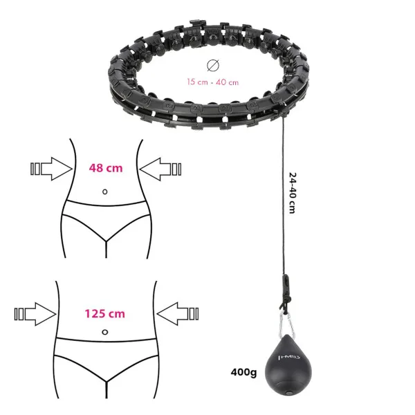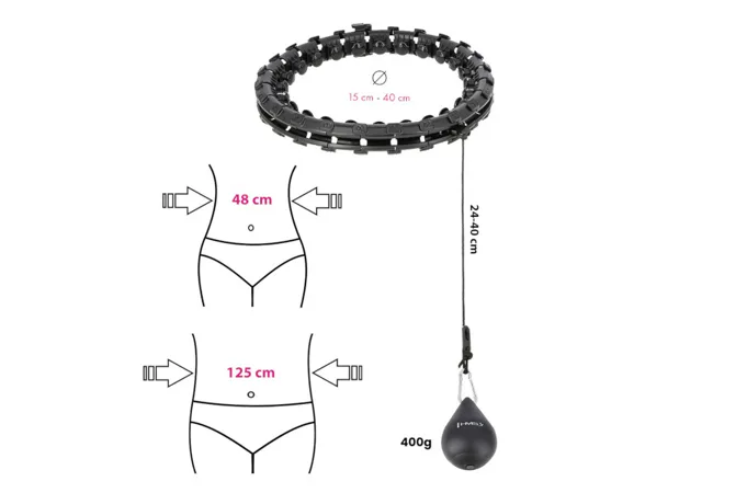 HMS HHW12 PLUS Size je hula hop obruč s nastaviteľnou dĺžkou, masážnymi výstupkami a rotujúcim závažím.
