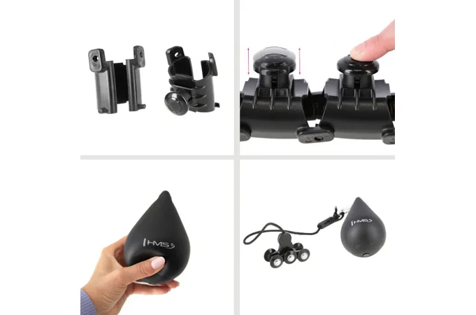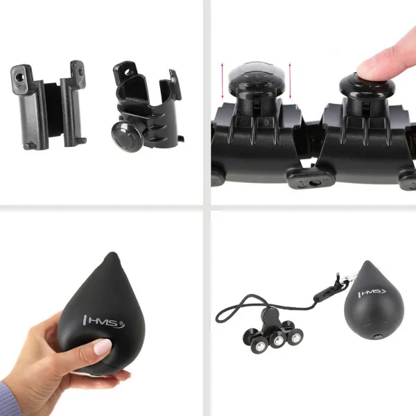 Funkcia obruče HMS HHW12 je veľmi jednoduchá. Konštrukcia sa skladá z 28 rovnakých dielov ktoré sa do seba skladajú. Aby išla obruč uzavrieť, tak je potrebné použiť najmenej 14 kusov, ktoré následne vytvoria kruh s vnútorným priemerom 15 centimetrov, pokiaľ spojíte všetkých 28 kusov, potom bude vnútorný priemer 40 centimetrov. Model HHW12 je vhodný pre obvod pása od 46-tich do 125-tich centimetrov. Jednotlivé diely v sebe skrývajú koľajnicu, do ktorej sa pred uzavretím zasunie kotva, ktorá je osadená šiestimi kolieskami s guličkovými ložiskami. Ku kotve je, pomocou dĺžkovo nastaviteľného povrázka, pripojené závažie s hmotnosťou 400 gramov. Povrázok je možné nastaviť na dĺžku 22 až 38 centimetrov, zmenou dĺžky povrázku sa nastavuje výsledná odstredivá sila závažia - čím dlhší povrázok, tým "ťažšie" bude závažie.