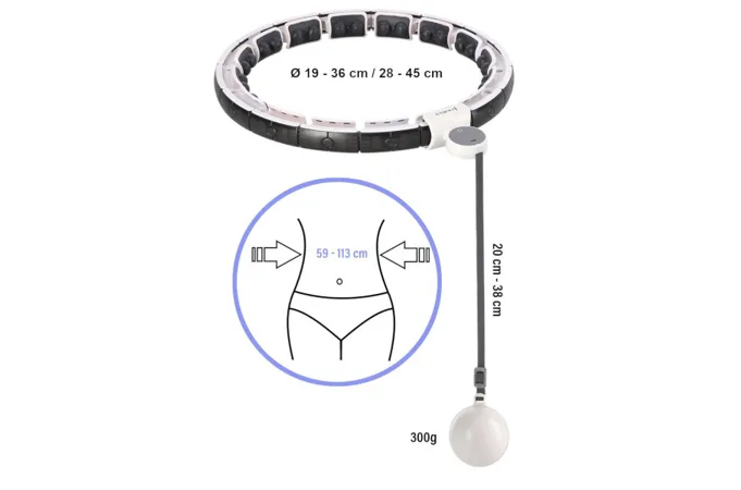 Dĺžka obruče sa nastavuje podľa obvodu pása tak, aby bola dostatočne voľná, ale zároveň neprepadávala cez boky. HHM16 je vhodná pre obvody pása od 59 do 113 centimetrov. Po nastavení dĺžky sa do koľajničky vloží kotva so závažím a obruč sa uzavrie. Potom sa závažie "hodí" v smere, v ktorom budeme krútiť bokmi, a začneme cvičiť. Intenzitu tréningu ovplyvňuje rýchlosť, akou krútime bokmi.