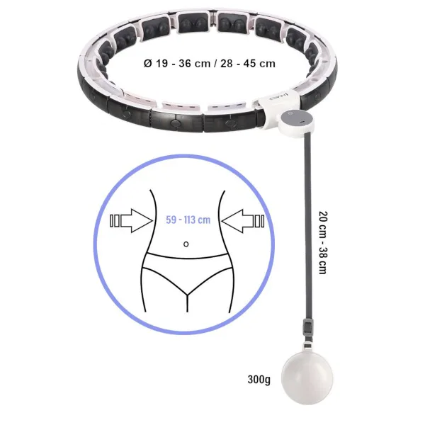 HMS HHM16 je obruč s nastaviteľným obvodom, magnetickými masážnymi výstupkami, rotačným závažím a prehľadným, ľahko čitateľným počítadlom.
