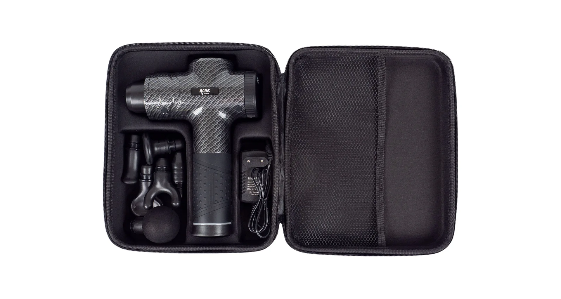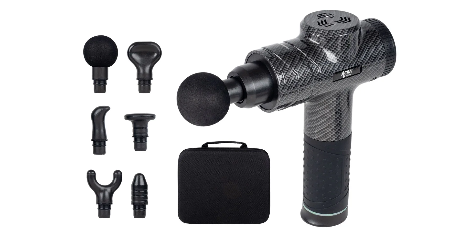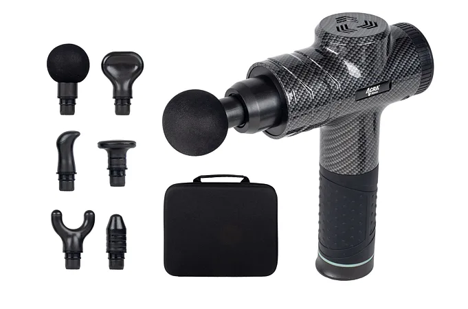 Bezdrôtová masážna pištoľ Acra Fitness GUN s LED displejom a šiestimi vymeniteľnými hlavicami, určená pre profesionálne aj amatérske použitie. Vyrobená z pevného materiálu ABS s príjemnou saténovou štruktúrou, ponúka dokonalú kombináciu výkonu a komfortu.