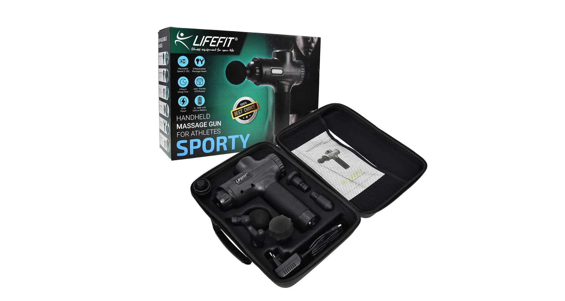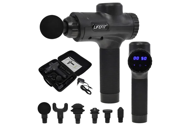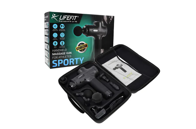 Masážna pištoľ LIFEFIT SPORTY pomáha zmierniť svalové napätie a stuhnutosť. Zvyšuje rozsah pohybu a zlepšuje cirkuláciu krvi. Vhodné na regeneráciu svalov, zmiernenie kŕčov vzniknutých intenzívnou fyzickou aktivitou. Táto bezdrôtová pištoľ je vhodná na masáž prakticky celého tela. V balení nájdete rovno 6 vymeniteľných nástavcov, každý je vhodný pre iný druh masáže. Vibrácie si navyše môžete zakaždým nastaviť do 30 rôznych rýchlostí.