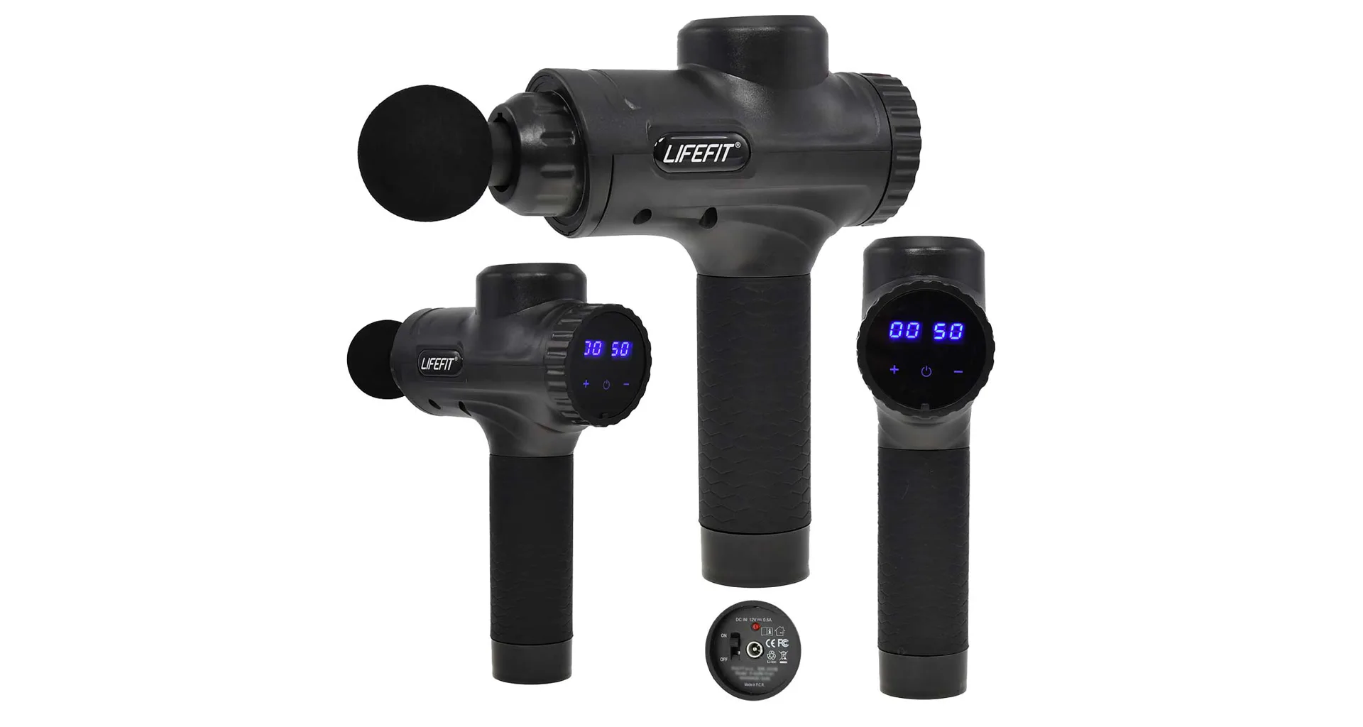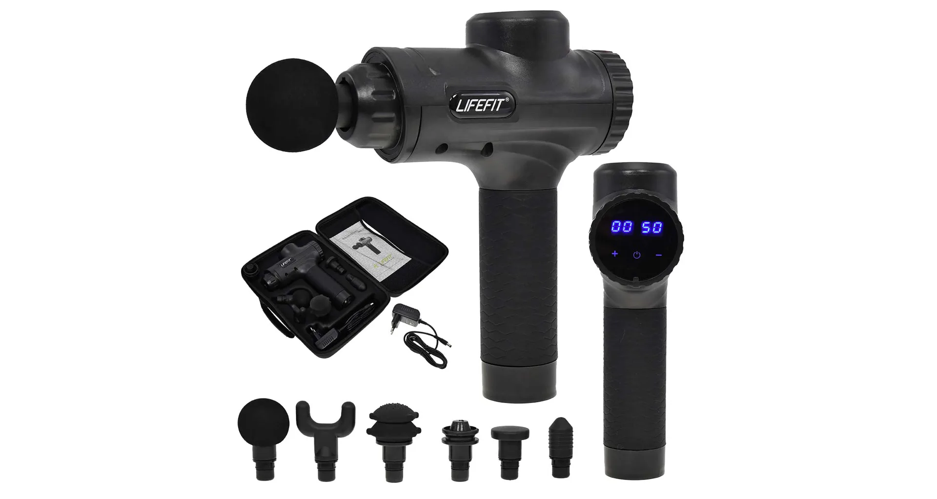 Masážna pištoľ LIFEFIT RELAX sa dodáva v praktickom kufríku čiernej farby.