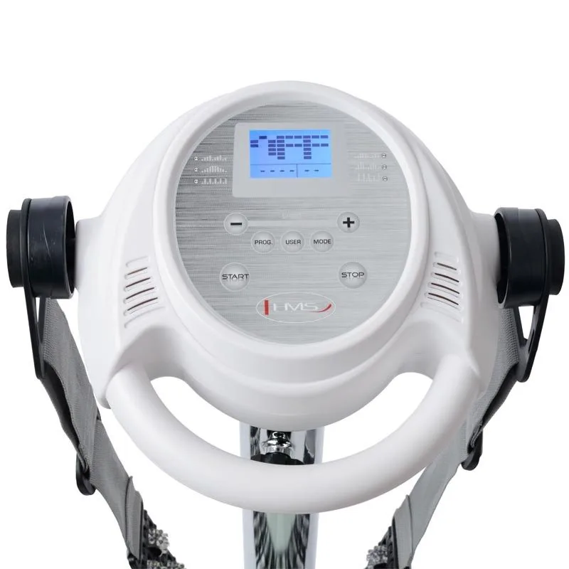 Vibromasážny pás HMS MA1001 má pozitívny vplyv na kardiovaskulárny systém, účinne uvoľňuje svaly a stimuluje ich vývoj. Je to univerzálne zariadenie, ktoré bez ohľadu na vek a zdravotný stav používateľa umožňuje starať sa o formu a Váš vzhľad priamo doma. Prístroj má integrovaný počítač s LCD displejom. Vďaka indikácii umožňuje s vysokou presnosťou odhadnúť počet spálených kalórií. Užívateľ si môže vybrať medzi šiestimi cvičebnými programami, rovnako ako samostatne nastaviť rýchlosť masáže aj dobu.