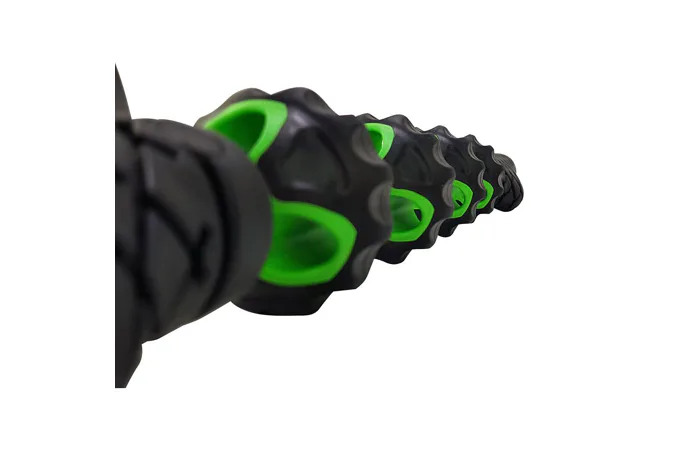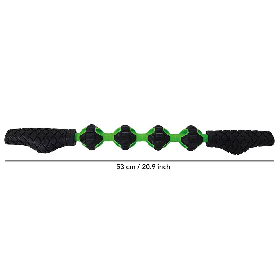 Masážny valec TUNTURI tvoria 4 masážne kolieska, ktoré umožnia lepšie uvoľnenie svalov a prekrvenie masírovaných oblastí. Je tiež vynikajúcim nástrojom na zníženie bolesti svalov či kĺbov a na celkovú stimuláciu krvného a lymfatického obehu, a to prakticky na ktoromkoľvek mieste na tele. Vďaka dvom dostatočne dlhým držadlám sa pohodlne drží. Veľmi odolný použitý materiál je zárukou dlhodobej výdrže.