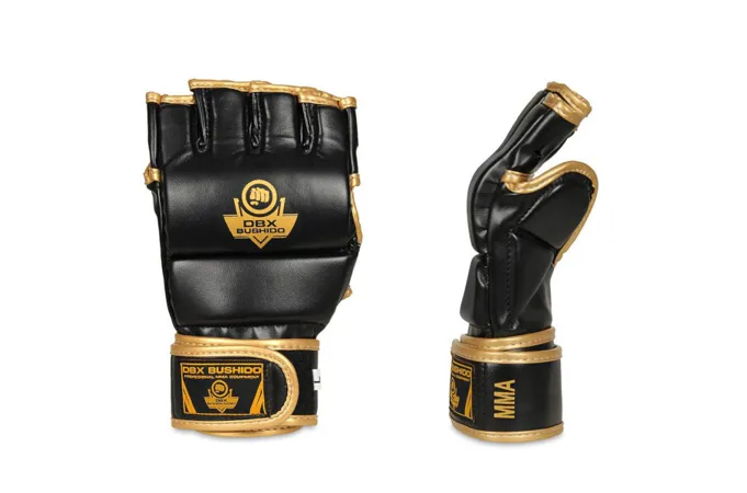 MMA a tréningové rukavice DBX BUSHIDO E1v8 sú vyrobené zo spevnenej, umelej kože so zvýšenou elasticitou, vyplnené sú penou. Vďaka otvorenej vnútornej strane vám rukavica umožňujú zachovať priľnavosť a ruka sa dokonale vetrá. Naviac je rukavica vybavená ochranným prekrytím chrbta palca a dlhým, širokým popruhom pre stiahnutie zápästia, aby sa minimalizovalo prípadné riziko zranenia. Vnútorná strana je obšitá hladkým materiálom pre jednoduché nasadenie a zloženie aj počas náročného tréningu. Anatomický tvar rukavíc v spojení so zvýšenou elasticitou umelej kože zabezpečí ich komfortné užívanie.