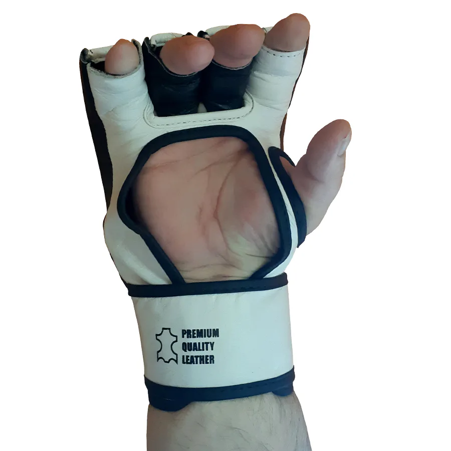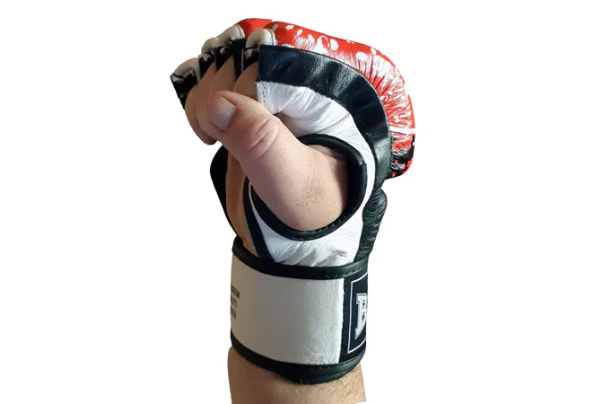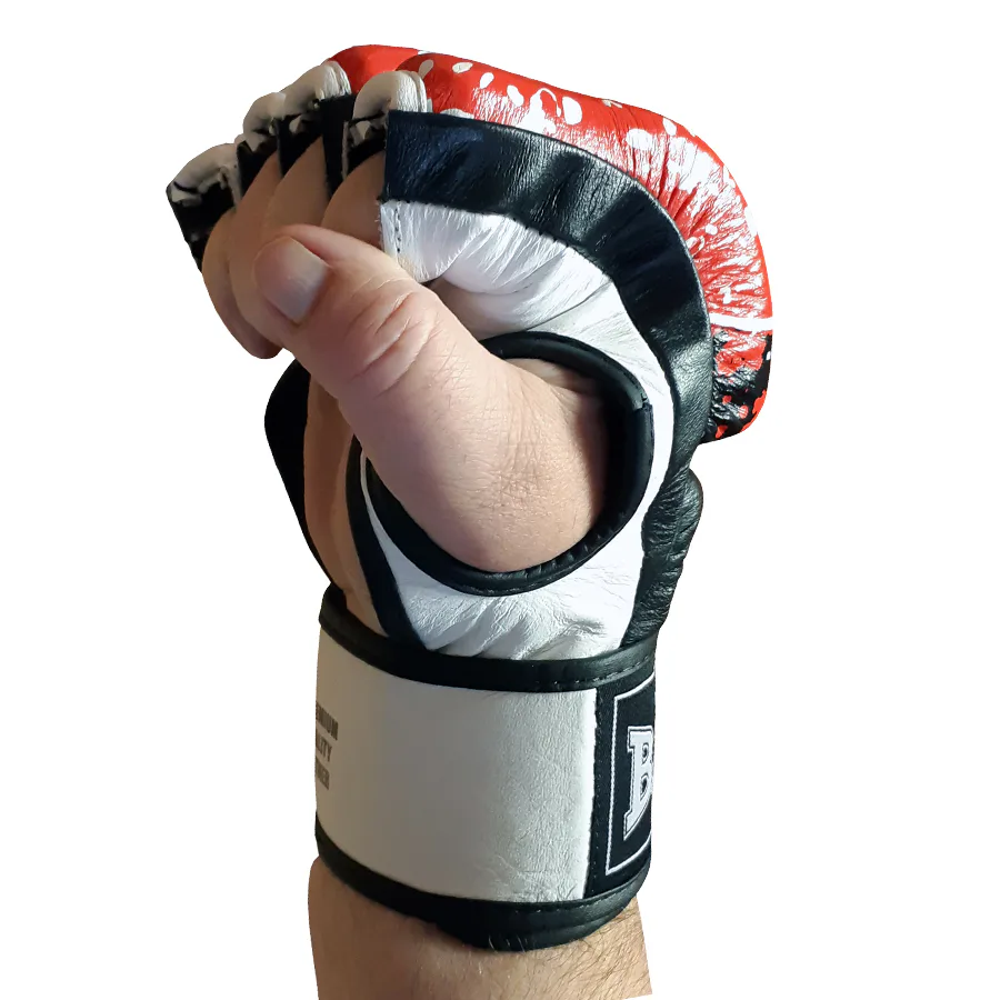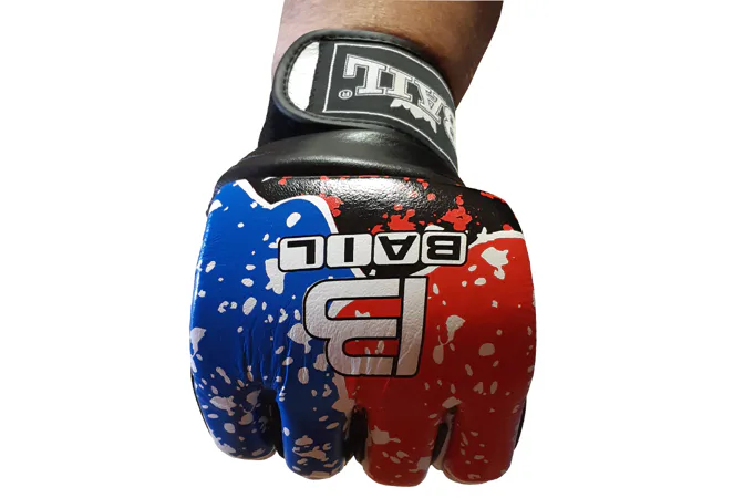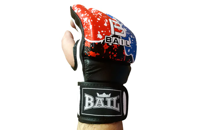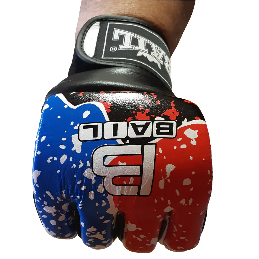 MMA rukavice Tricolor od značky BAIL vynikajú svojím celookoženým spracovaním s otvoreným palcom sú určené ako pre tréning v oblasti MMA. Špeciálne tvarované vypchávky chránia proti prípadným zraneniam kĺbov a prstov. Tvrdené a vytvarované polstrovanie zaisťuje flexibilitu a nebráni v pohybe. Rukavice majú vyrezanú dlaň, ktorá umožňuje protivníka pevne držať bez toho, aby zo zovretia vykĺzol.