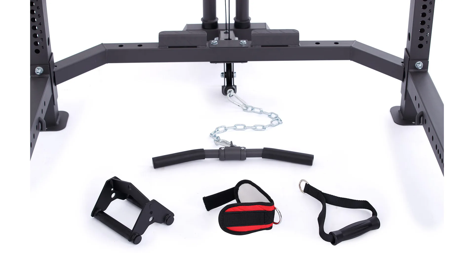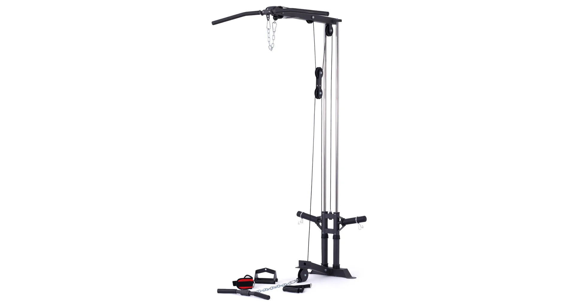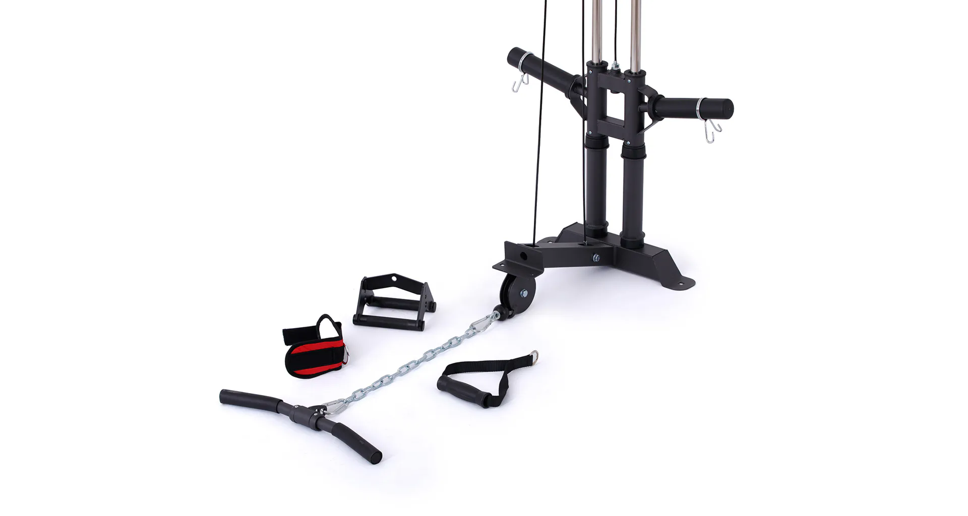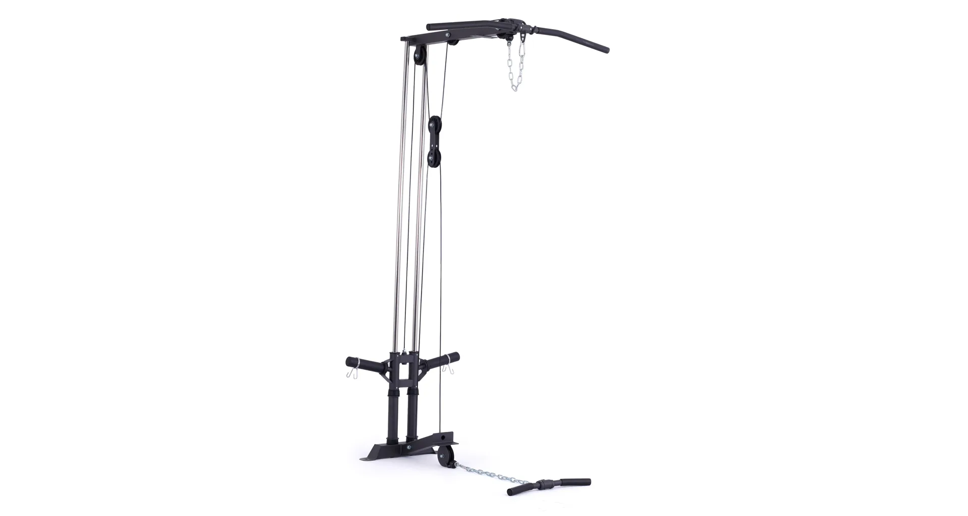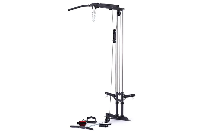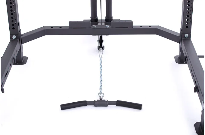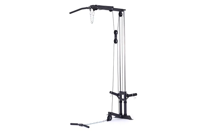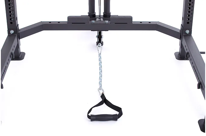 Kladka je vybavená profesionálnymi ložiskami, robustnými kladkovými lanami, testovanými na váhu až 800 kg a nastaviteľnou dĺžkou lán až v 5 úrovniach. Závažie sa nakladá na tŕne v podobe olympijských kotúčov, vďaka tomu si môžete detailne určiť váhu priamo pre seba.