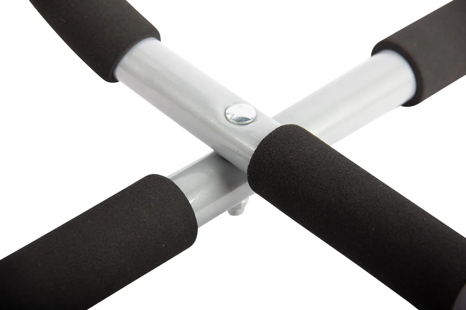 Hrazda sa ľahko umiestňuje medzi dverný rám. Unikátny design pracuje pomocou páky, takže nepotrebujete skrutky ani vŕtačku. Je to praktické zariadenie pre vaše príťahy a zhyby, ktoré po skončení tréningu ľahko opäť z dverí zložíte. Hrazda má maximálnu nosnosť 100 kg a je vhodná pre dvere so šírkou 61 až 86 cm.