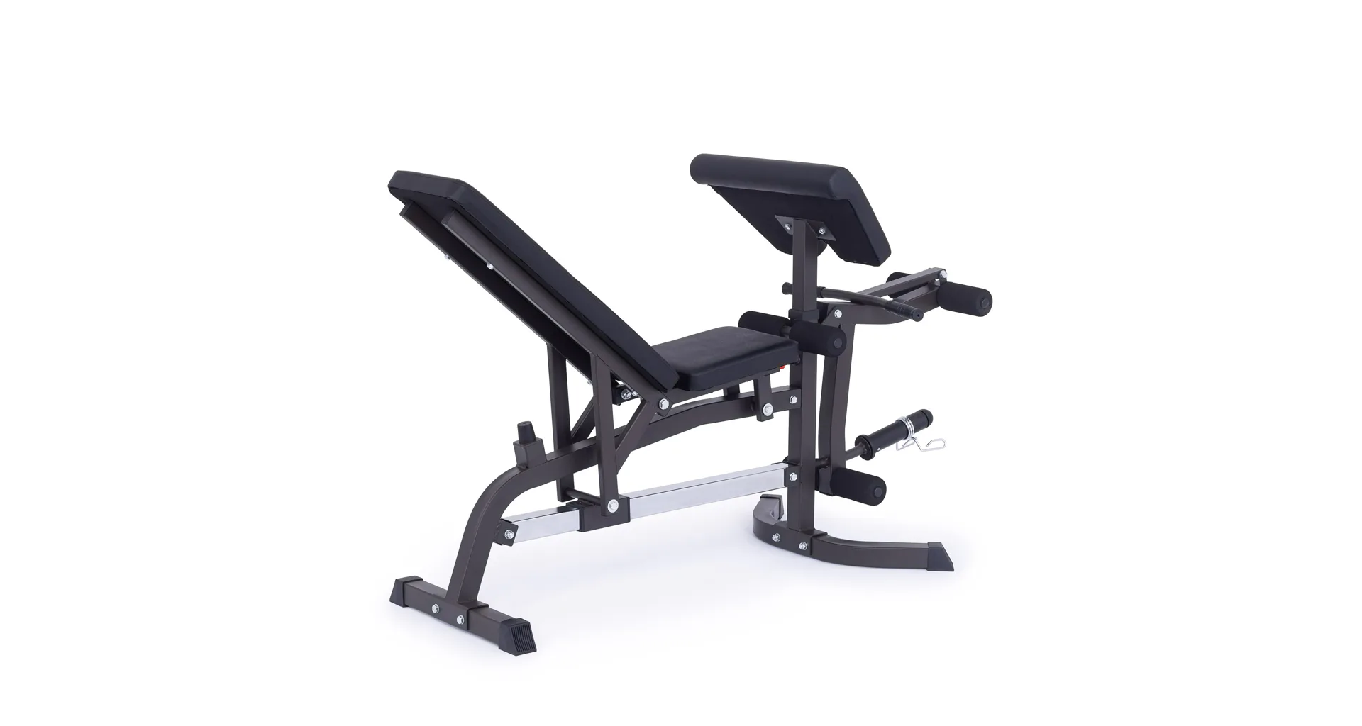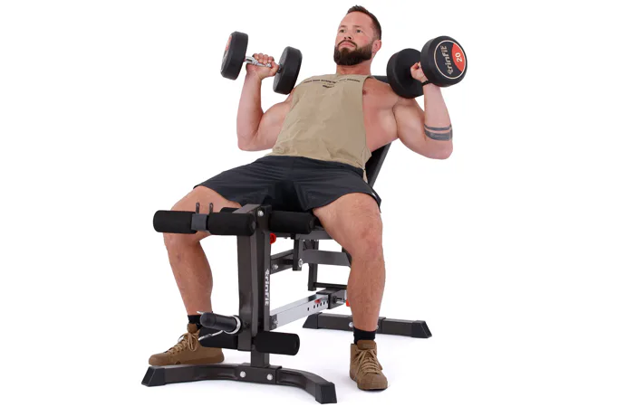 Masivní ocelová konstrukce z profilů 50 x 50 x 2 mm a 40 x 60 x 2 mm, vysoce odolné čalounění a mimořádně velký rozsah polohování až do 10 poloh zaručují všestrannost, dlouhodobou životnost a kvalitní trénink. Díky širokému rozsahu polohování si můžete snadno přizpůsobit sklon lavice přesně podle svých potřeb, ať už trénujete hrudník, záda nebo ramena.