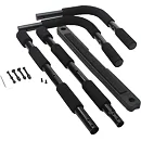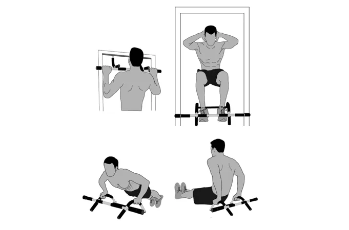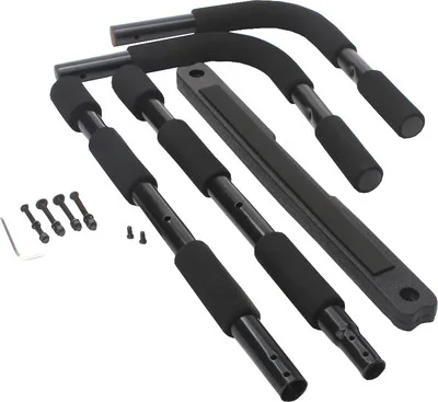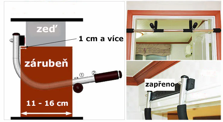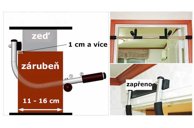 TUNTURI závesná hrazda do dverí je samovzperná dverová hrazda, ktorú nie je nutné po osadení na obložkové zárubne nijak fixovať (vŕtať), stačí ju zavesiť do zárubne. Súčasťou sú však i oceľové profily-háky, ktoré je možné na pevno prichytiť na stenu a do týchto držiakov sa následne hrazda zavesí (súčasťou nosičov sú i hmoždinky a vruty). Konštrukcia je vyrobená z kvalitného materiálu, úchopy sú mäkké. Povrch má ochrannú vrstvu so zvýšenou odolnosťou proti poškrabaniu.