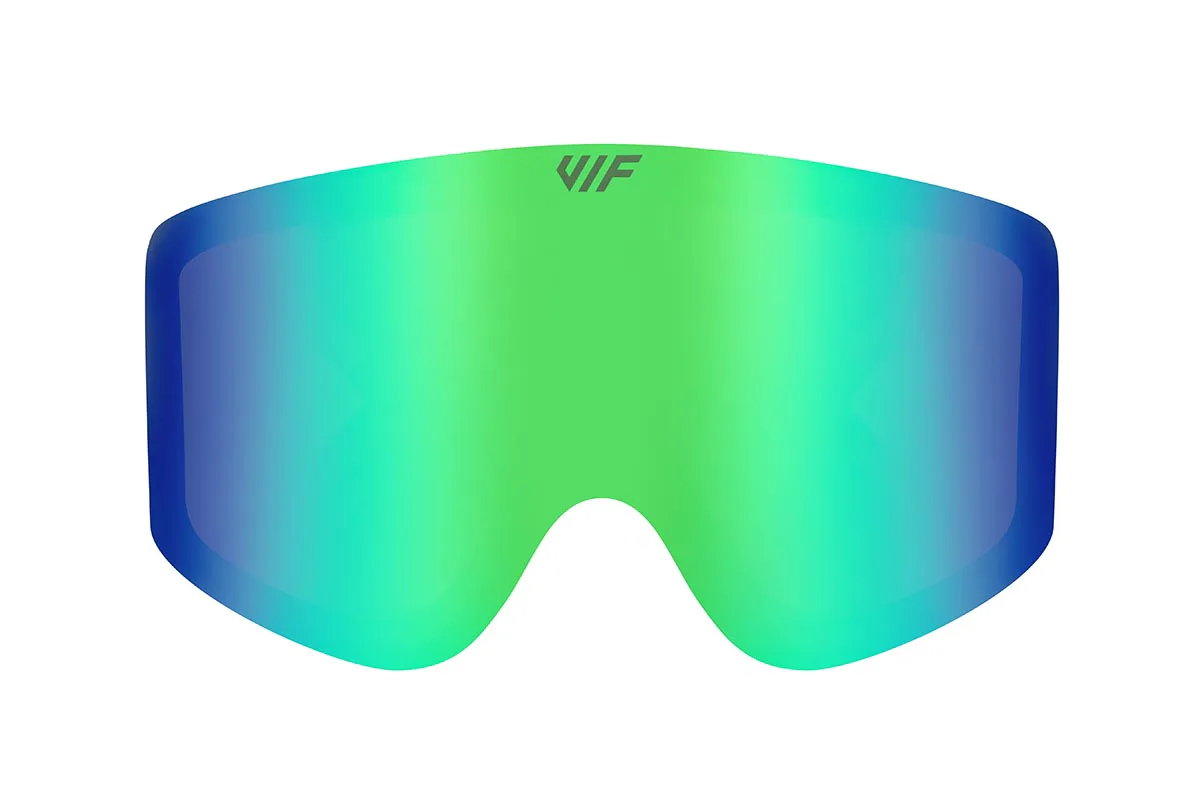 Krásny zelený zorník VIF pre lyžiarske a snowboardové okuliare VIF je kategória S2, má teda univerzálnu svetelnú priepustnosť a je vhodný na slnečné dni do výšok do 2500 m.n.m. Samozrejmosťou je UV400 a hydrofóbny filter, vďaka ktorému sa okuliare nezahmlievajú za žiadneho počasia.