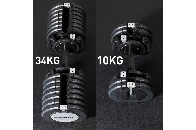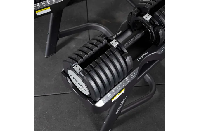 Jednoručná nakladacia činka PRIMAL STRENGTH s praktickým riešením úpravy záťaže. Pomocou praktického nakladacieho/vykladacieho systému nebola zmena hmotnosti nikdy jednoduchšia. Vami požadovanú váhu si môžete veľmi jednoducho zmeniť pomocou posuvníka, ktorým vyberiete požadovanú hmotnosť. Na ďalšie presnejšie zvýšenie alebo zníženie váhy slúži otočný mechanizmus.