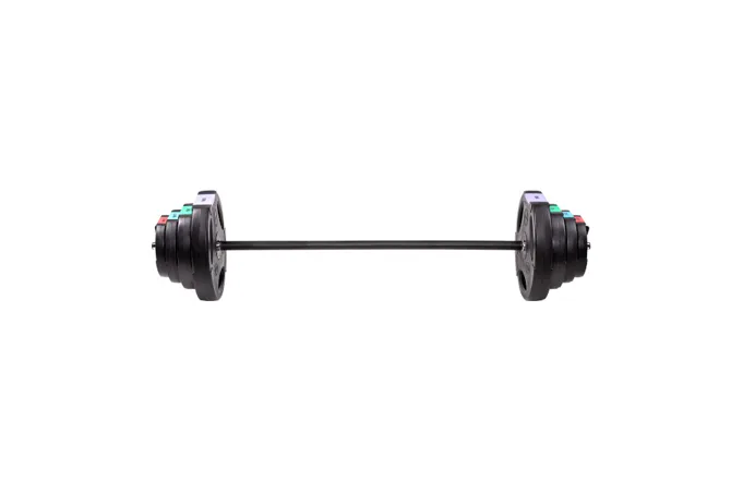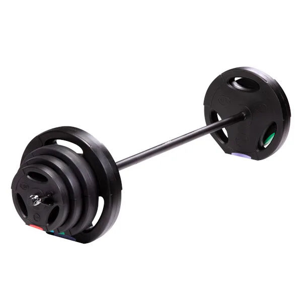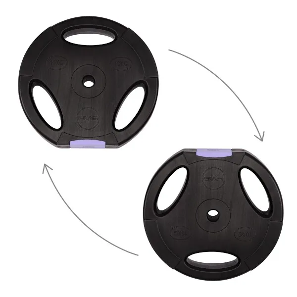 Kotúče sú vyrobené z tvrdého plastu, ktorý je vyplnený cementom. Obojručná os je tvorená z troch častí, ktoré sa do seba skladajú pomocou šróbenia. Nakladacie tŕne sú hladké a závažie sa zaisťuje pružinovými svorkami.