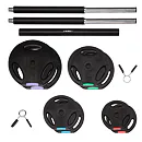 Sada obsahuje 1 obojručnú os, 2 pružinové svorky a celkom 8 kotúčov rôznych váh.