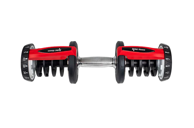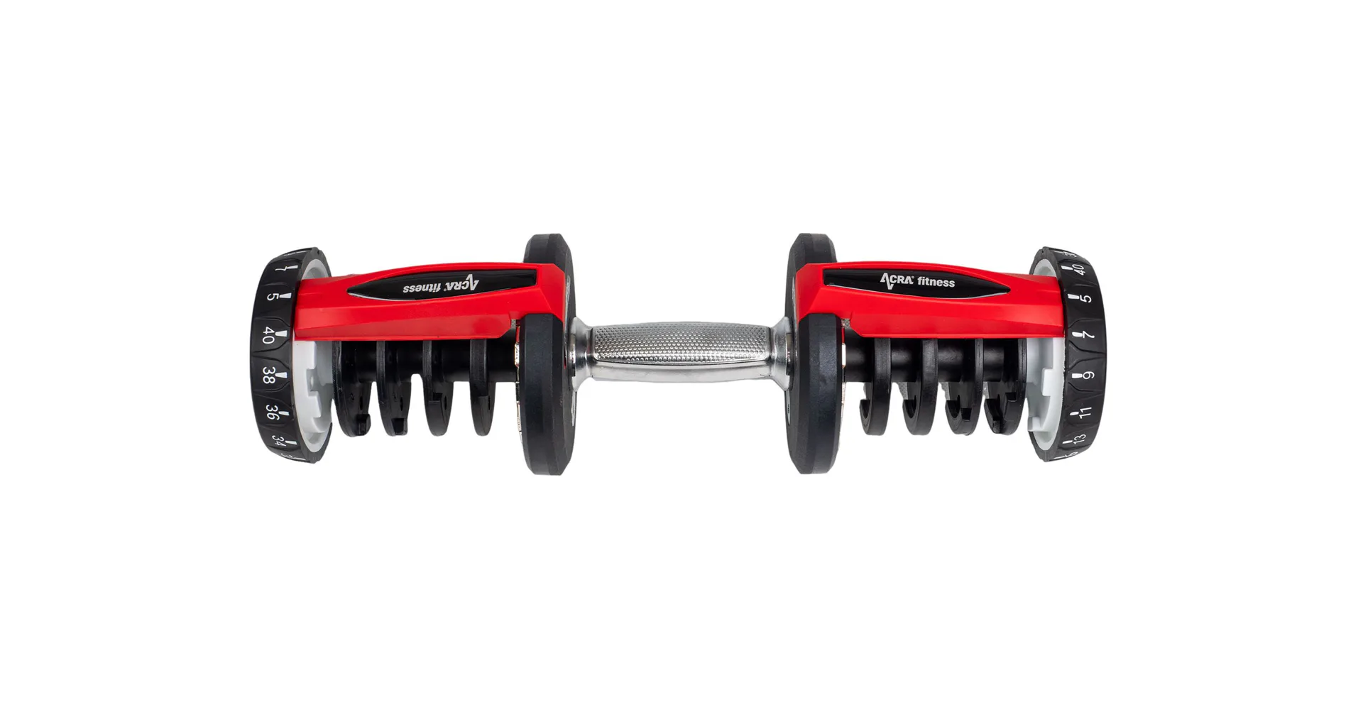 Nastaviteľná činka Acra 40kg 16v1 - Nastaviteľná jednoručná činka pre domáci tréning. Chcete si vybudovať silné a vyrysované telo, ale nemáte čas na posilňovňu? S nastaviteľnou činkou to zvládnete aj doma!