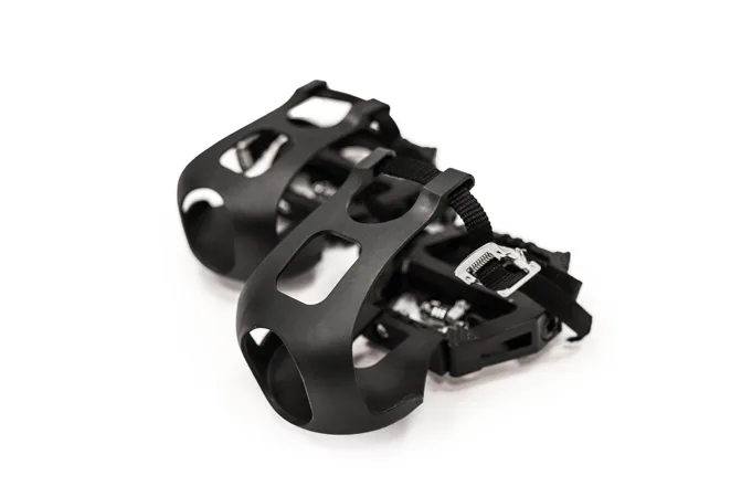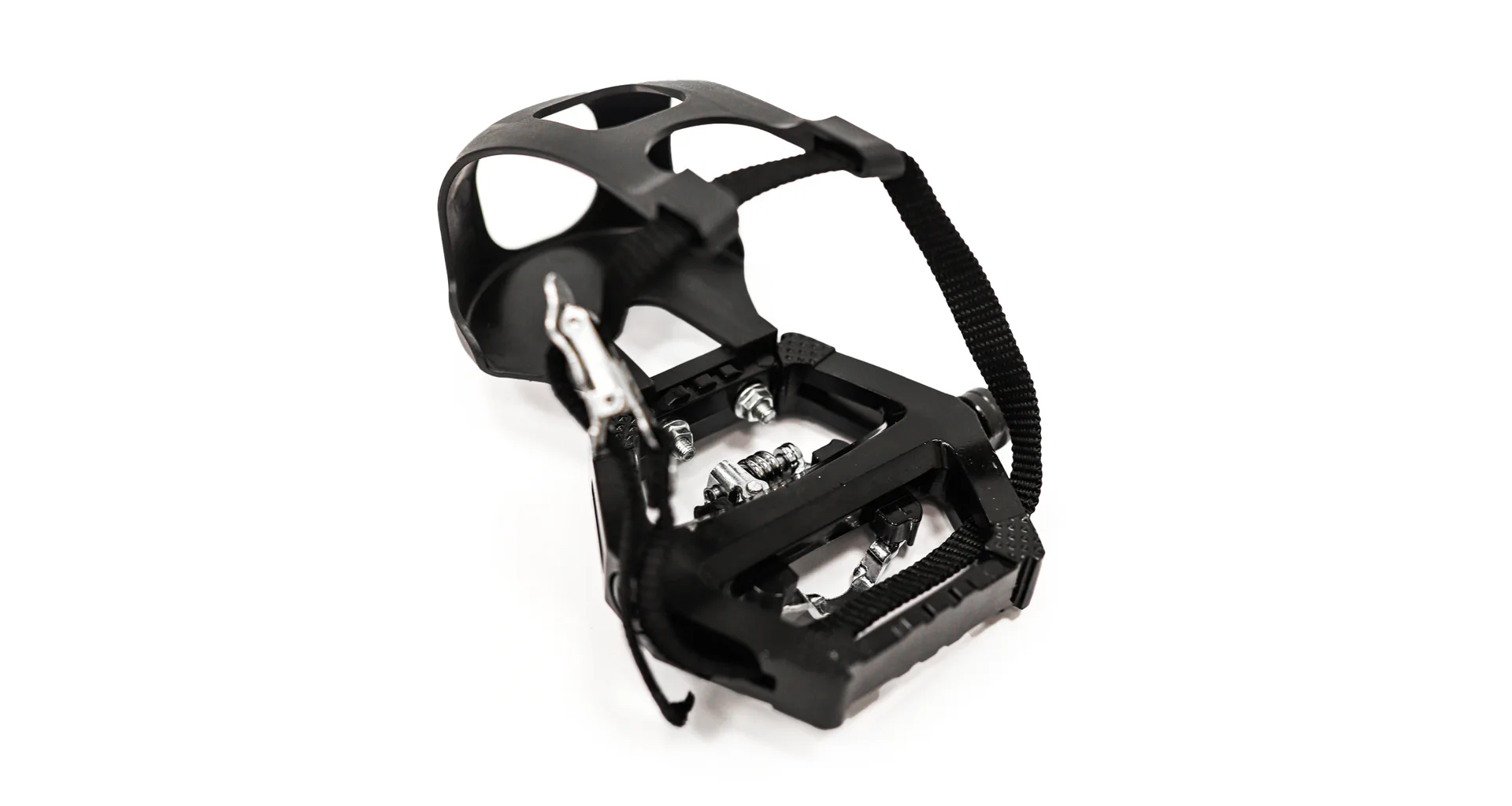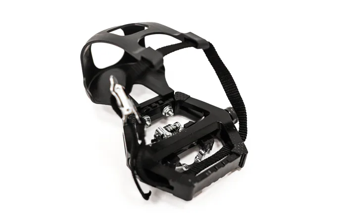 Pedále sú osovo vyvážené, z hornej strany sú opatrené protišmykovou úpravou, priehlavok obopína plastová klipsňa s remienkom, ktorého dĺžku je možné nastaviť podľa veľkosti obuvi a individuálnych potrieb.